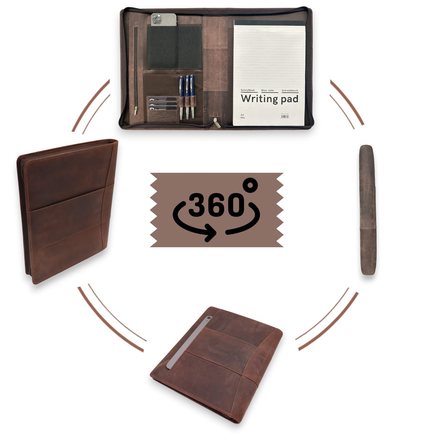 Safekeepers Ledermappe a4, Konferenzmappe A4 Leder,Schreibmappe a4 Reißverschluss,Dokumentenmappe a4 Leder ringbuch