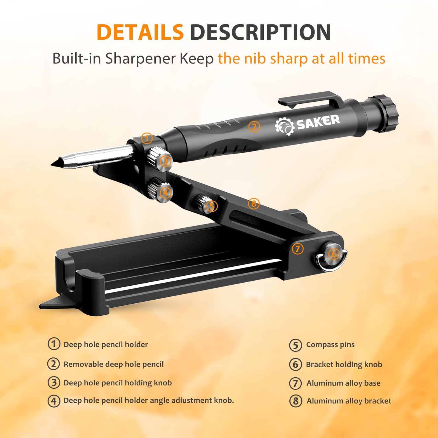 Saker Multifunktionales Anreißwerkzeug- Multifunktions Baustift- Konstruktionsbleistift- Zimmermannsbleistift, Anreißwerkzeug mit Tieflochstift, DIY Holzbearbeitungs-Anreißlehre Anreißer