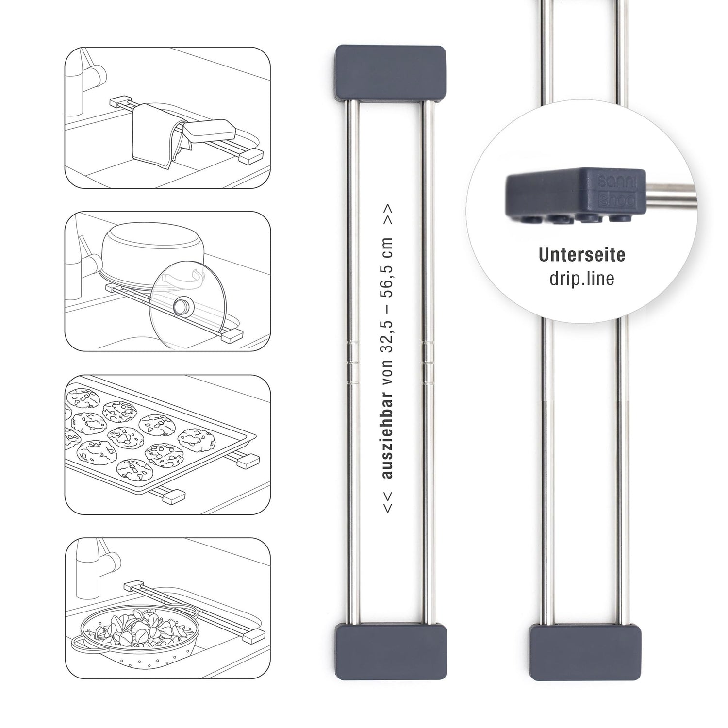 • 👌 Platzwunder mit Anpassung: Dank seiner ausziehbaren Bauweise kann sich dieser Küchenhelfer jeder Spülenbreite anpassen und lässt sich kompakt verstauen, wenn er nicht gebraucht wird.
