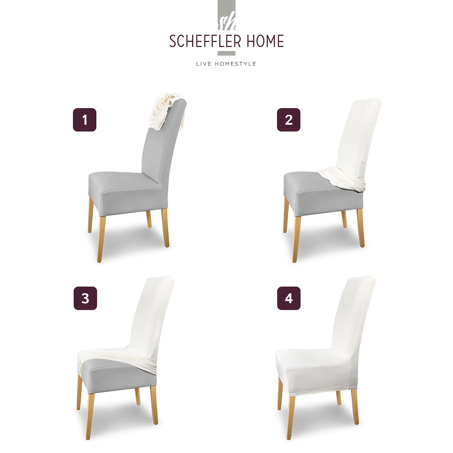 SCHEFFLER-Home Stuhlhussen Leon Beige/elastische Wildleder Hussen für Stühle/robuste Freischwinger Hussen/Stuhlhussen Stretch & Lederoptik/Stuhl Hussen waschbar