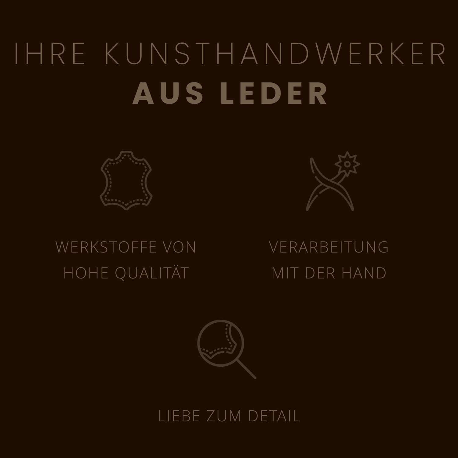 • 100 % ECHTES LEDER – Unsere Produkte verwenden nur vollnarbiges Kalbsleder aus Santa Croce sull'Arno (Toskana). Bei der Lederherstellung wird das natürliche Aussehen bewahrt. Es ist der ultimative Ausdruck von „echtem Leder“, unübertroffen in Qualität, Robustheit und Atmungsaktivität. Bei Alterung entwickelt das Leder eine natürliche, schützende Patina, die die Haltbarkeit Ihres Produkts erhöht, ihm Charakter verleiht und ein markanter Beweis für die hohe Qualität des verwendeten Leders ist.