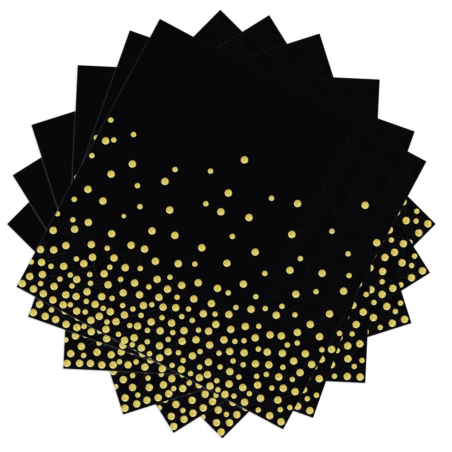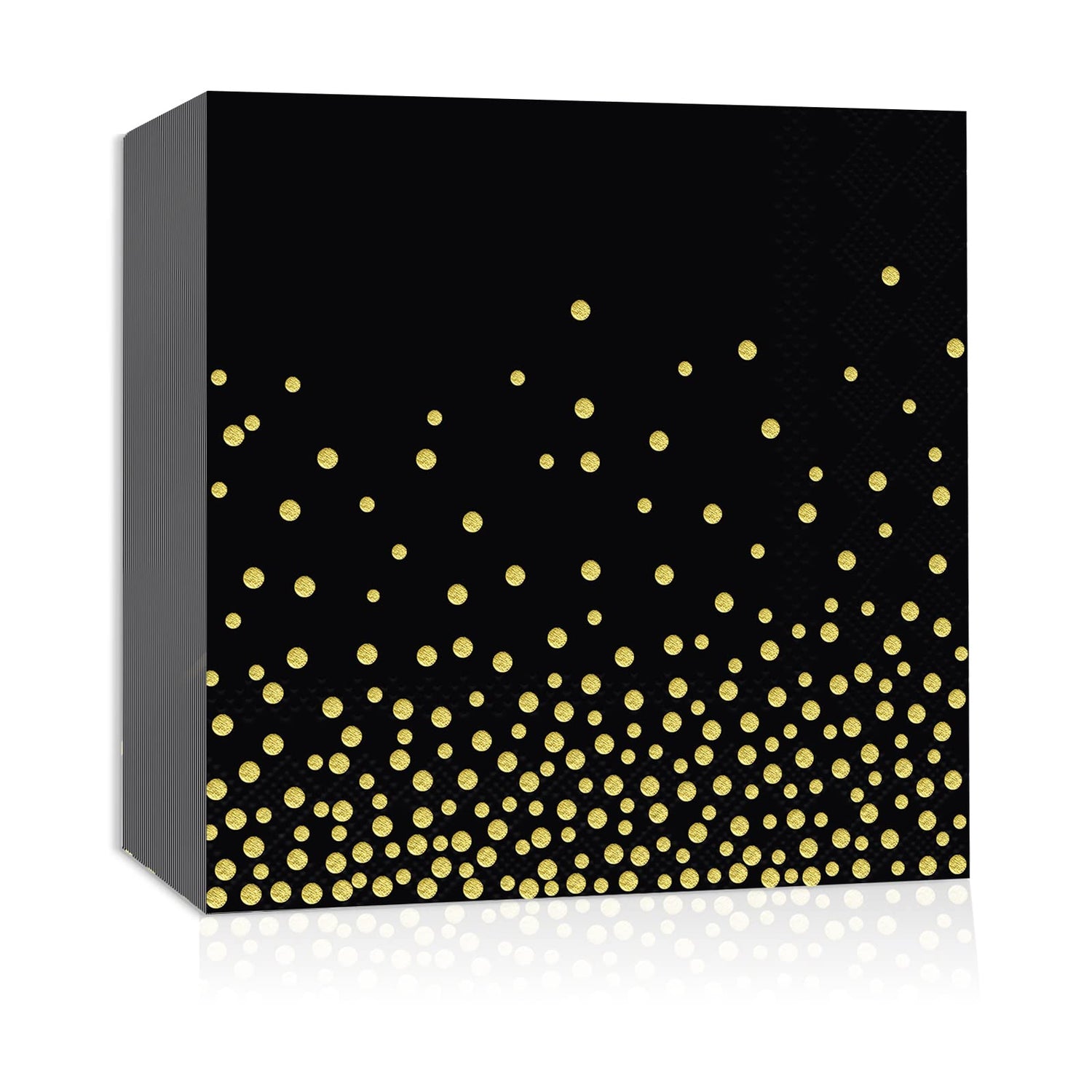 Servietten, Goldfolie Party-serviette Schwarz Golddruck Gepunktete 3-lagig Papier Servierten, Cocktailservietten 33x33cm Papierservietten mit metallic Aufdruck, 20 Stück