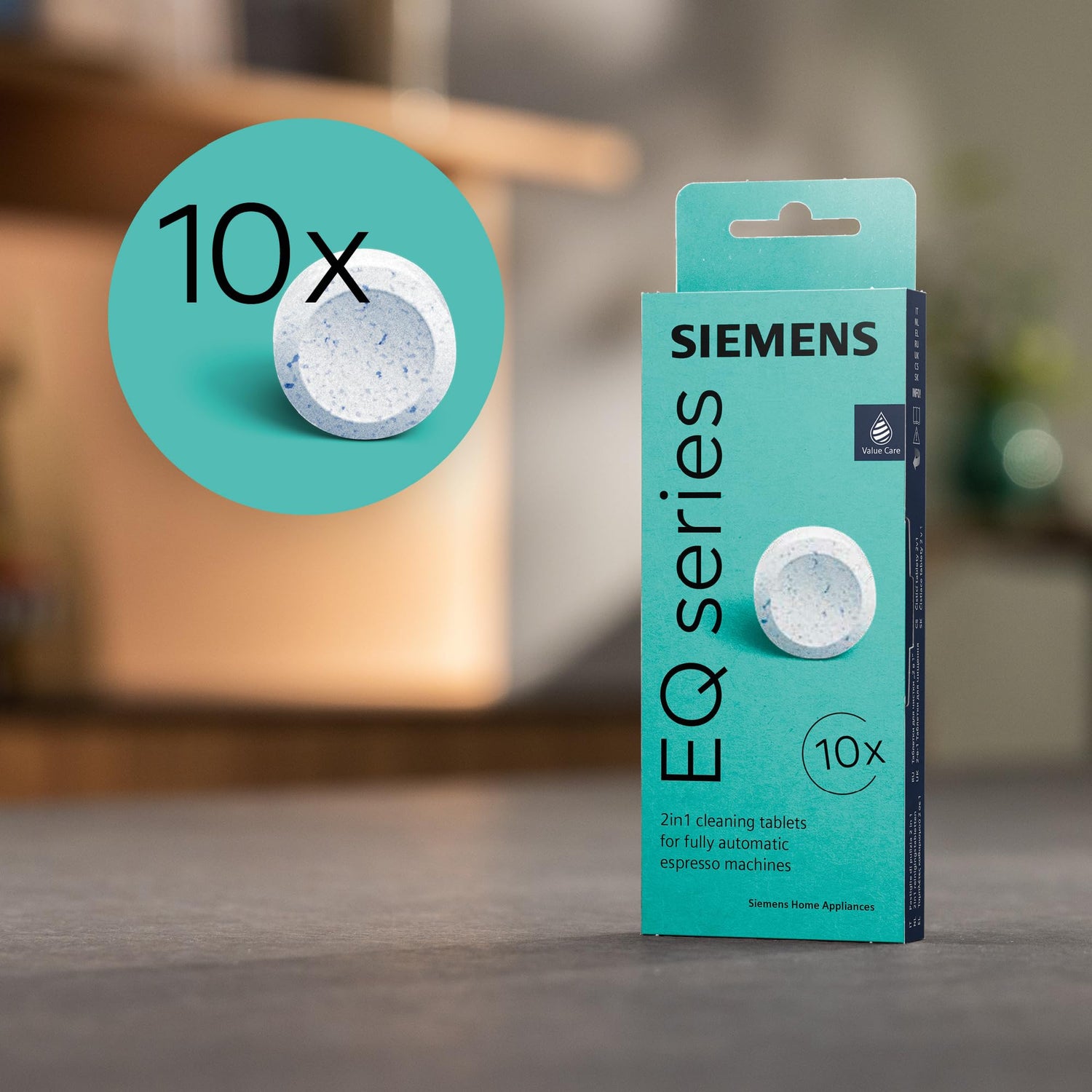 Siemens Reinigungstabletten TZ80001A, 10 Stück, Kaffeeöl-Rückstände ideal entfernen, optimiert für das Reinigungsprogramm von Kaffeevollautomaten der Reihen EQ, surpresso und Einbauvollautomaten