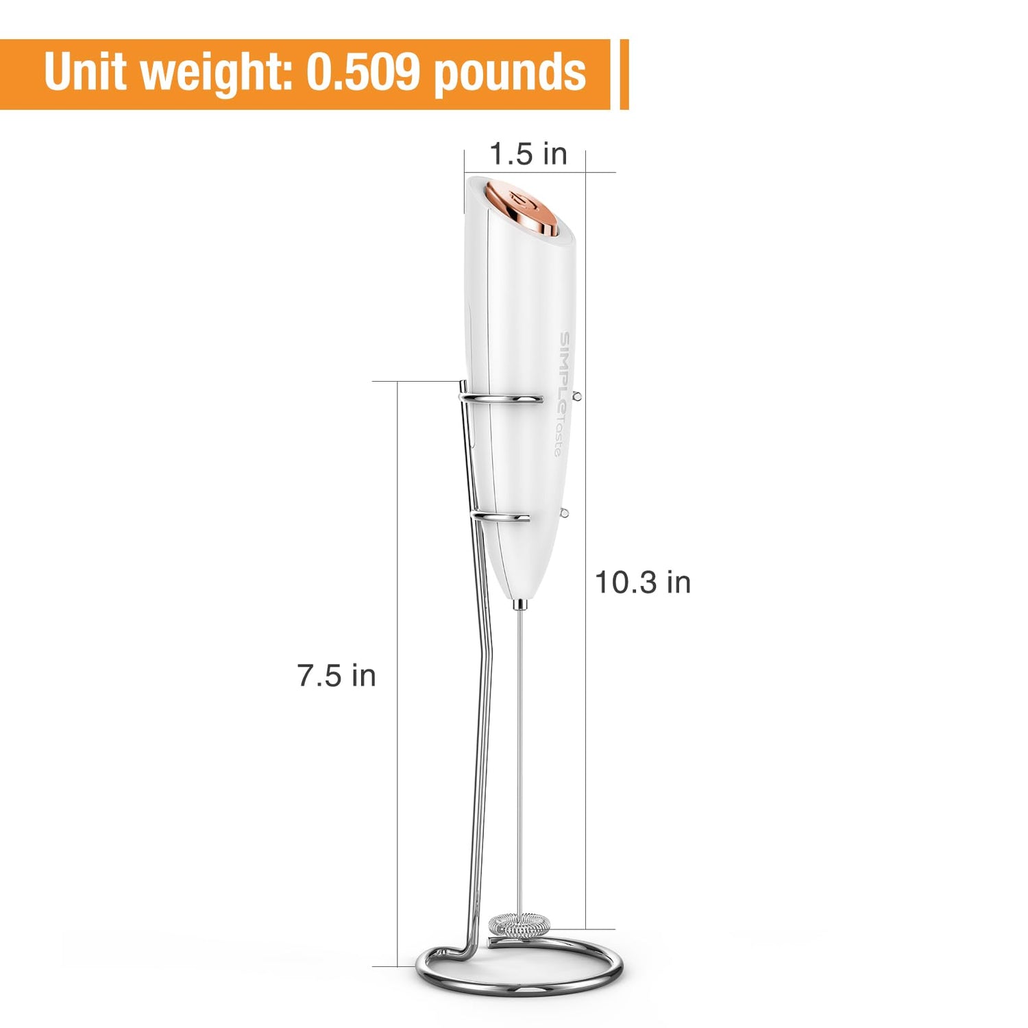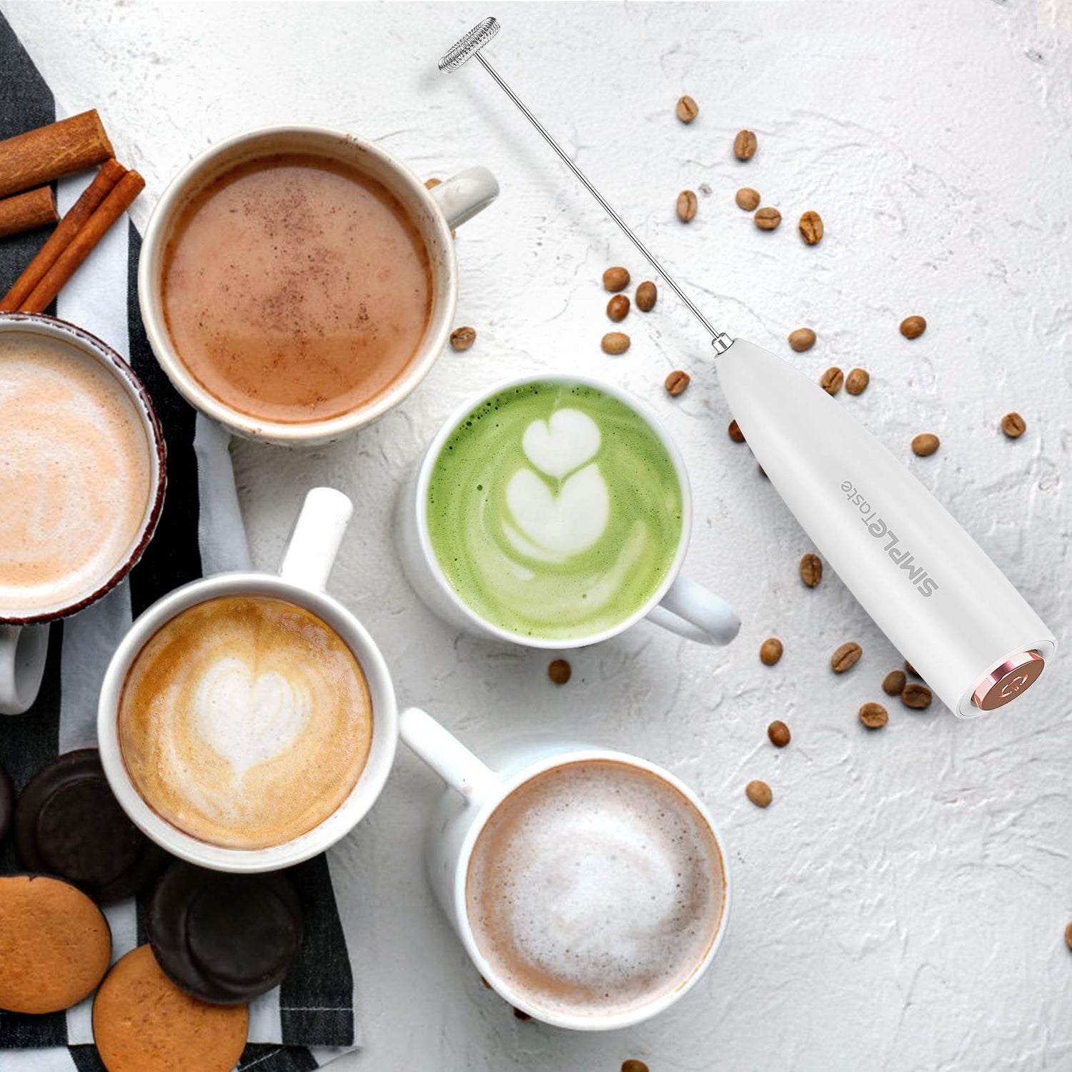 SIMPLETASTE Milchaufschäumer Handheld Batteriebetriebener Elektrischer Schaumbereiter, Getränkemixer mit Edelstahl-Schneebesen und Ständer für Cappuccino, Kugelsicherer Kaffee, Latte