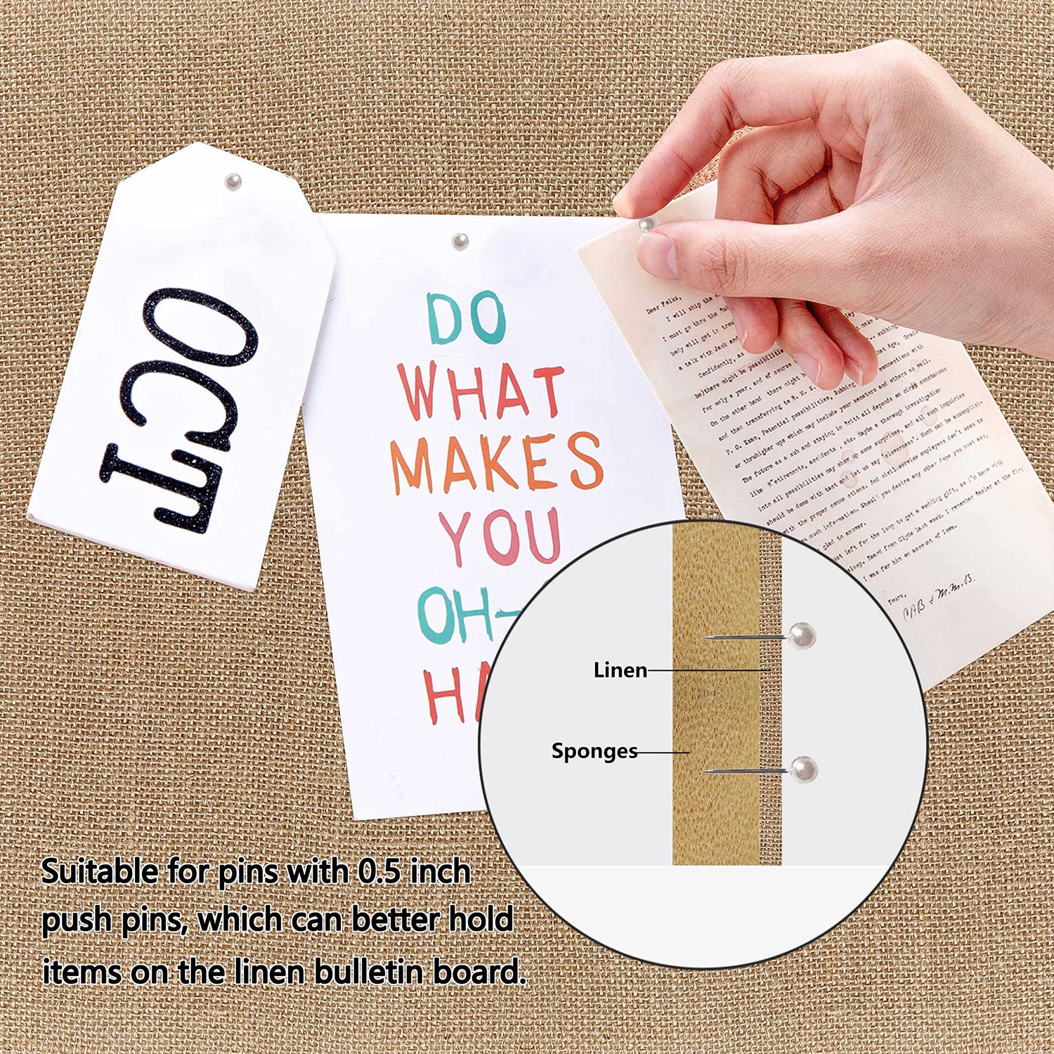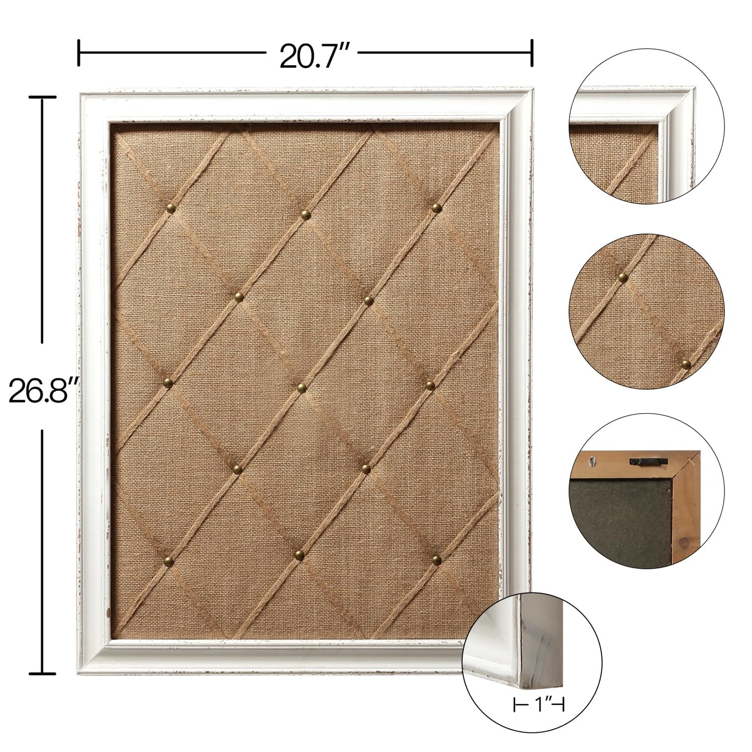 • [MATERIAL UND ABMESSUNGEN] Die Pinnwand ist aus FIR75% + MDF15% + Schwamm5% + Leinen5%, besteht aus einem Holzrahmen, einer Leinenstoff-Deckschicht und einer Papprückwand. Abmessungen: 52,5x68 cm