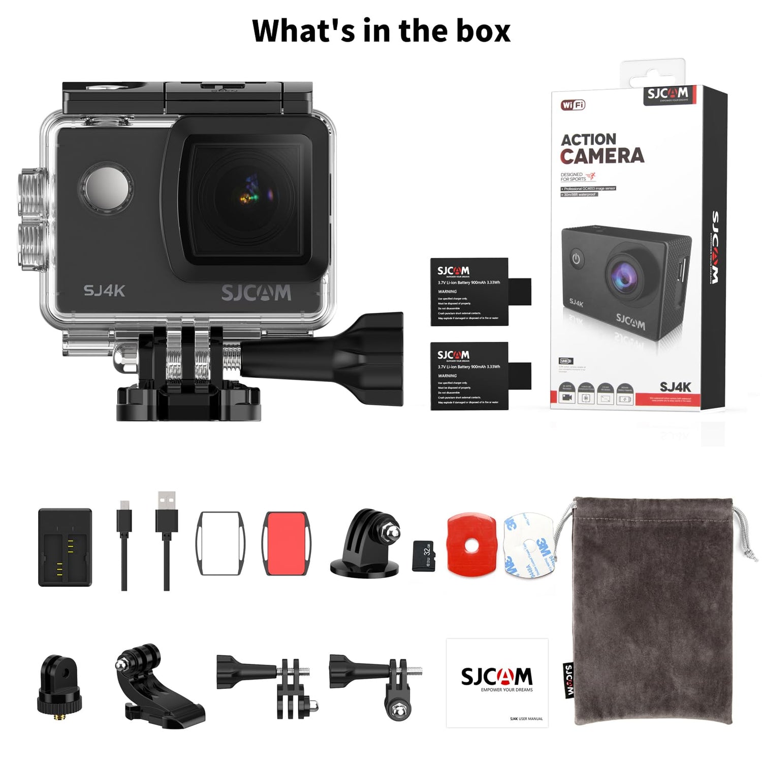 SJCAM SJ4000 Action Cam 4K30fps WiFi Kamera,40MP Ultra HD 170°FOV mit EIS Bildstabilisierung,Unterwasserkamera 30m/98ft Wasserdicht Kamera mit 2 Akkus, 32G SD Karte und Helmhalterung Zubehör Kits