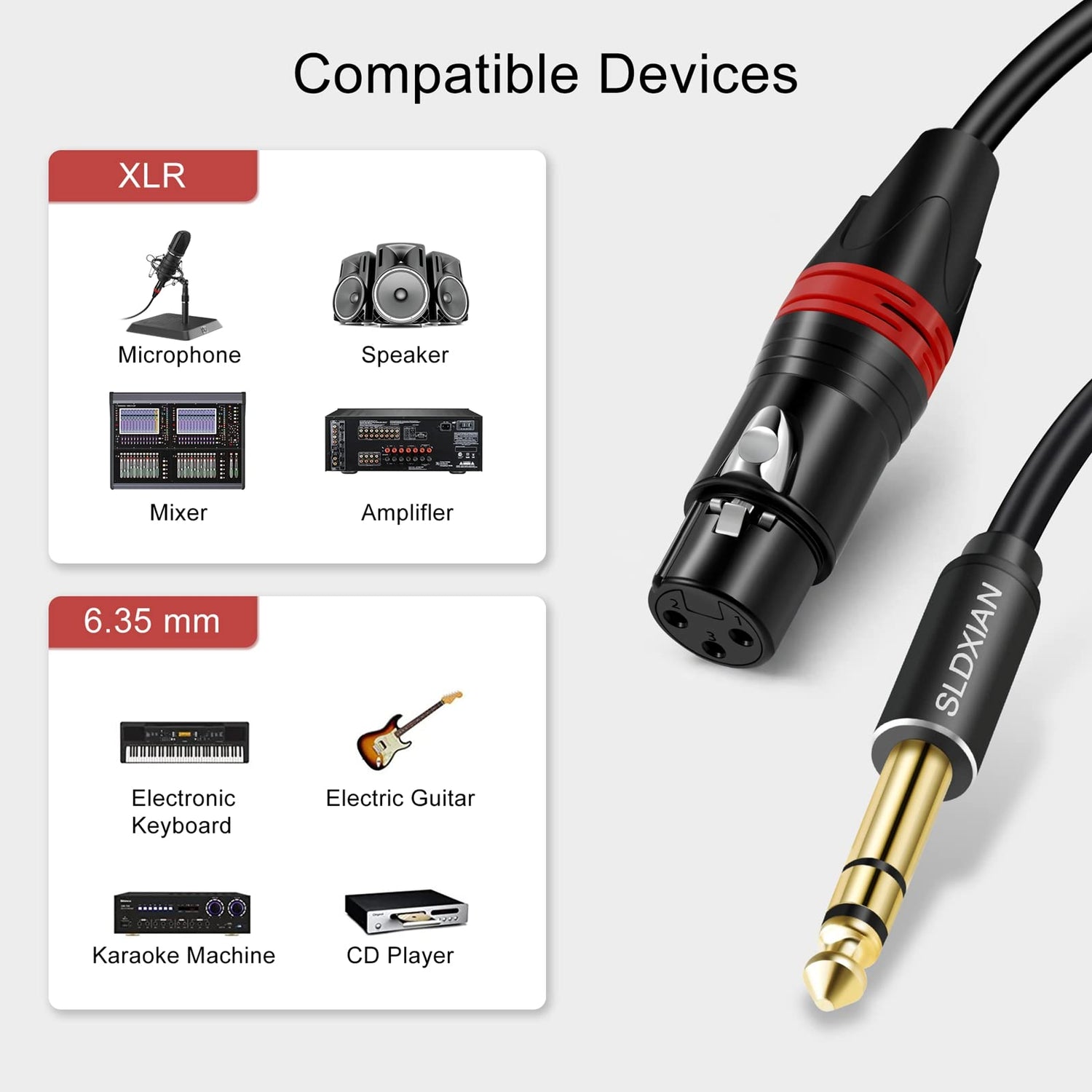 SLDXIAN 6,35mm TRS Klinke auf XLR Buchse Mikrofonkabel, 1/4 Zoll Klinke auf XLR Female Kabel (1M, Female)