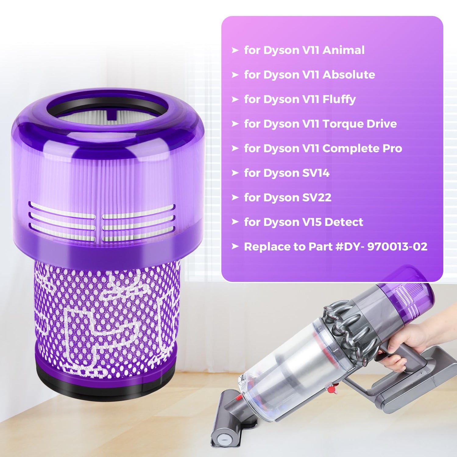 Smyidel Filter für Dyson V11, 3 Pack Vakuumfilter Ersatz für Dyson V11 V15 SV14 SV17 SV22 Detect Animal Absolute Extra Pro Torque Drive Akku Staubsauger, Ersetzen Sie # 970013-02(V11)