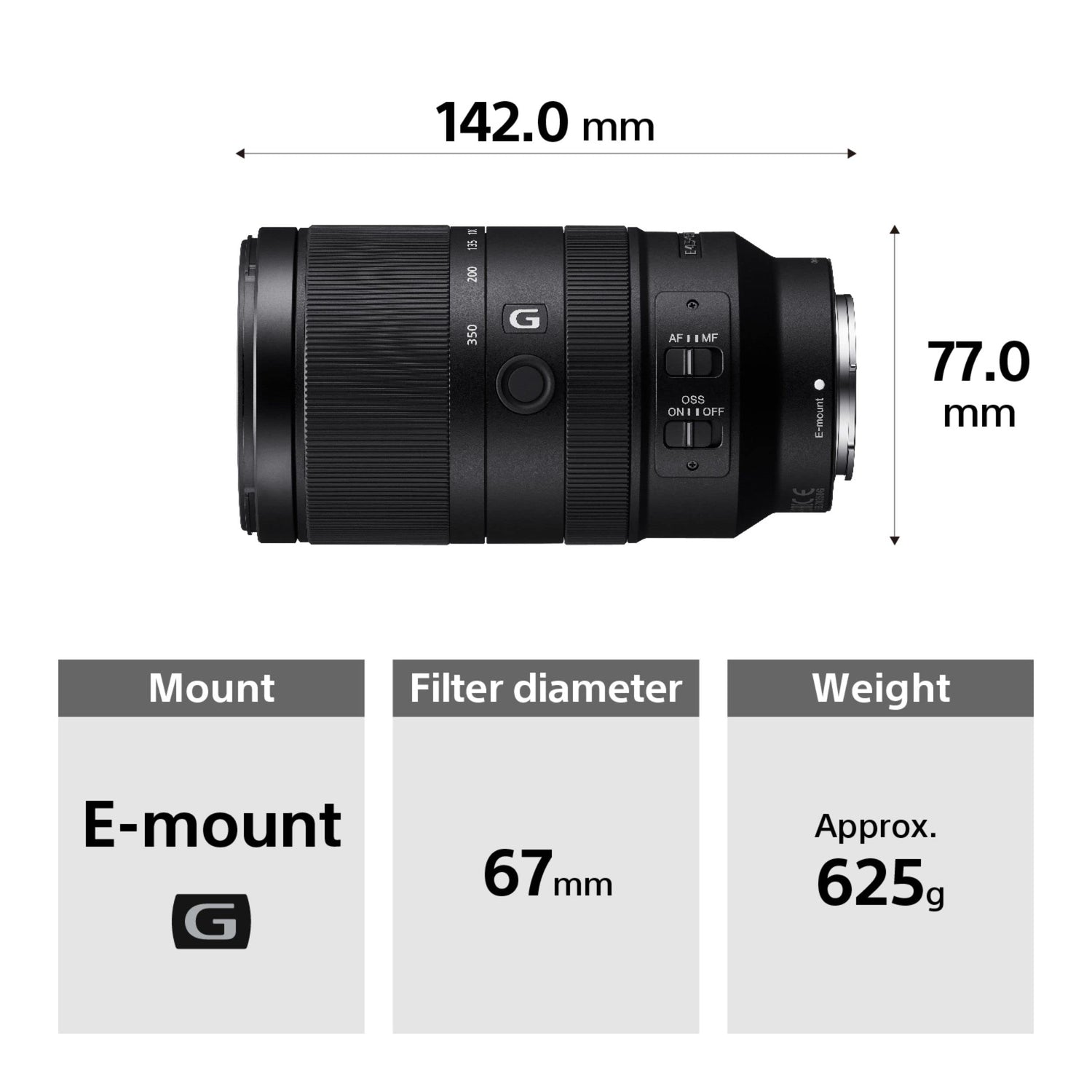 Einzelheiten: Sony E 70-350mm F4.5-6.3 G OSS Super Telezoom Objektiv für APS-C, G-Serie, kompatibel mit A7-Serie, A6000-Serie & ZVE1/10, E-mount (SEL70350)