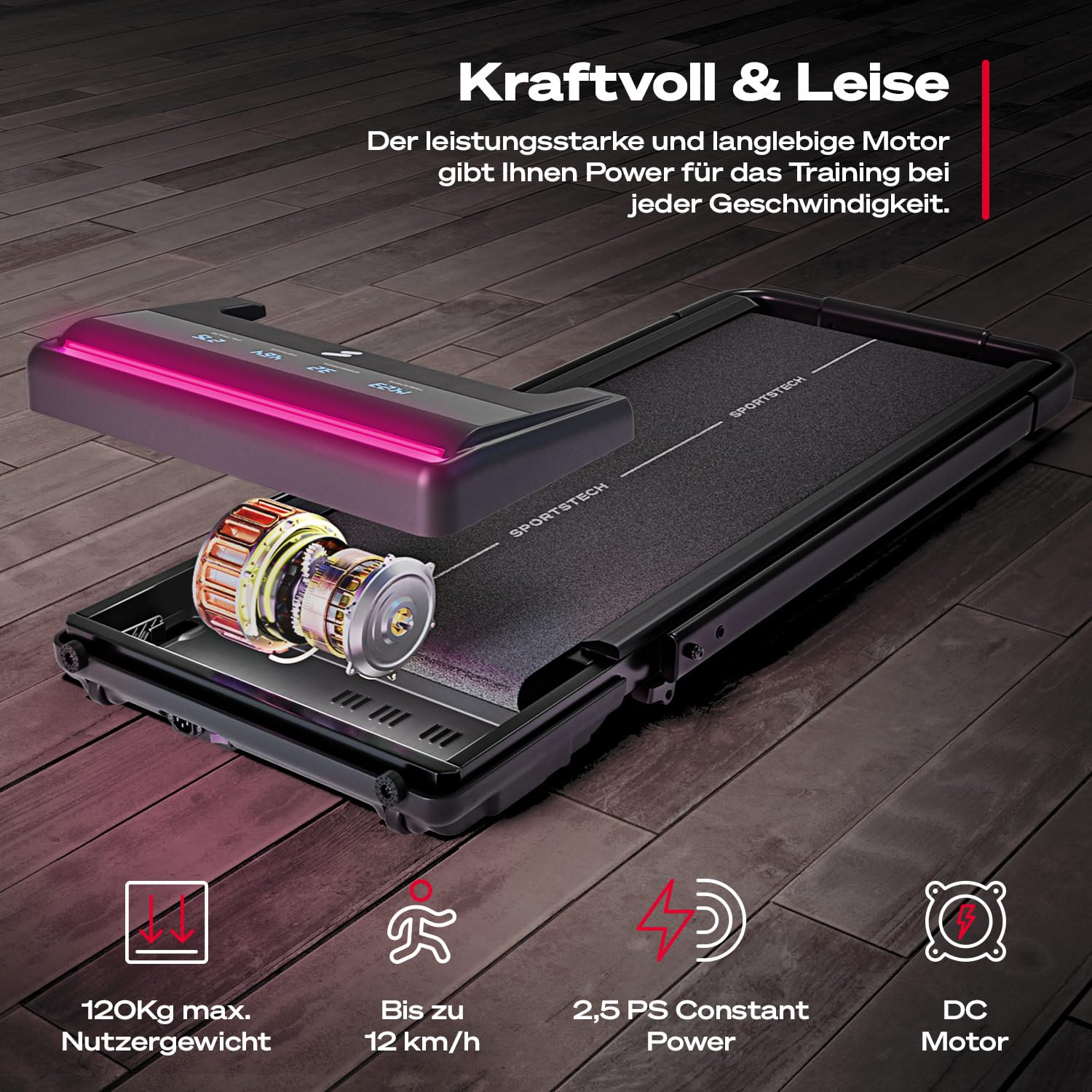 Sportstech Laufband Walking Pad für Zuhause, mit manueller Steigung, Walking Pad bis 6 km/h, Treadmill bis 12km/h, App, Fernbedienung, kompakt, Home Office (sWalk lite Plus)