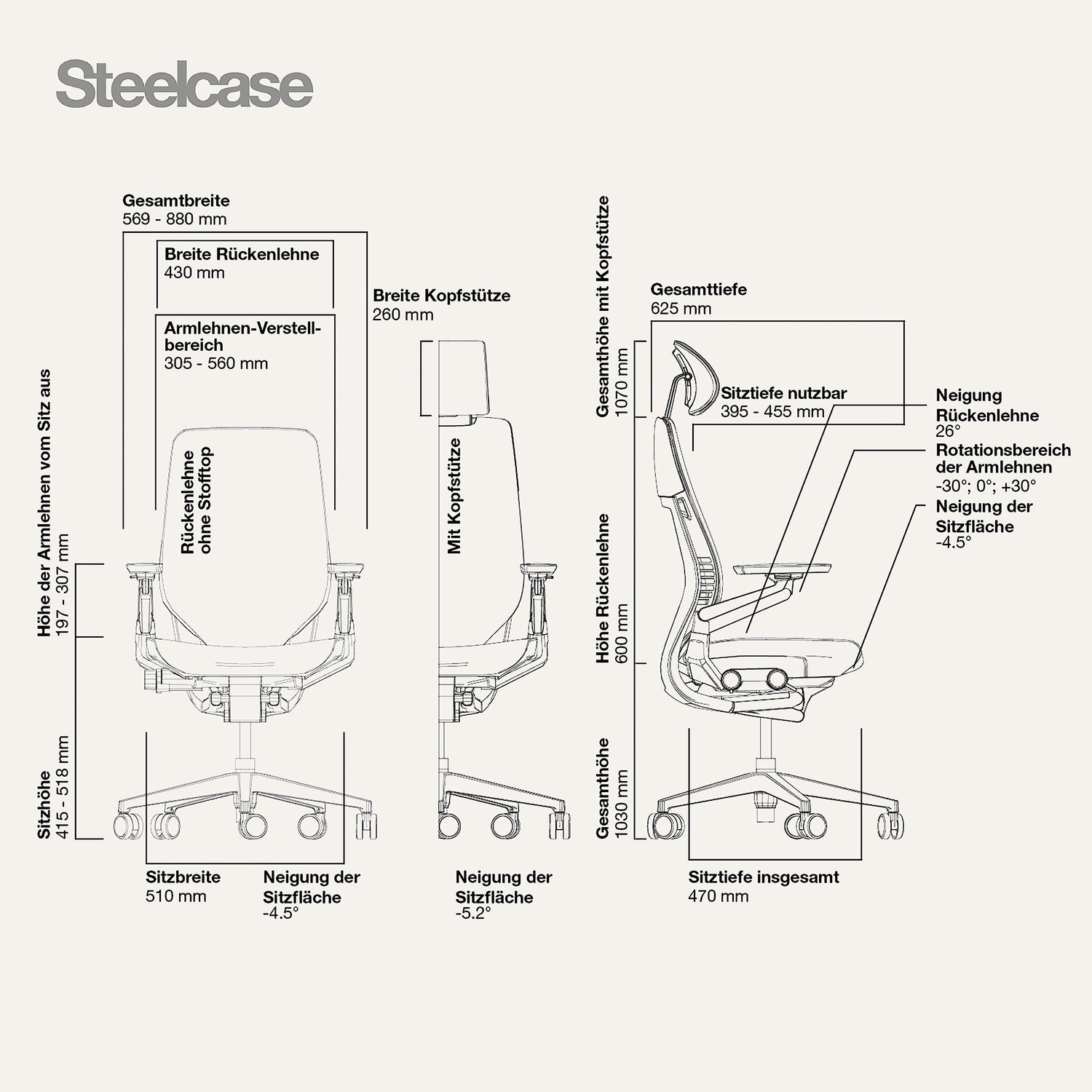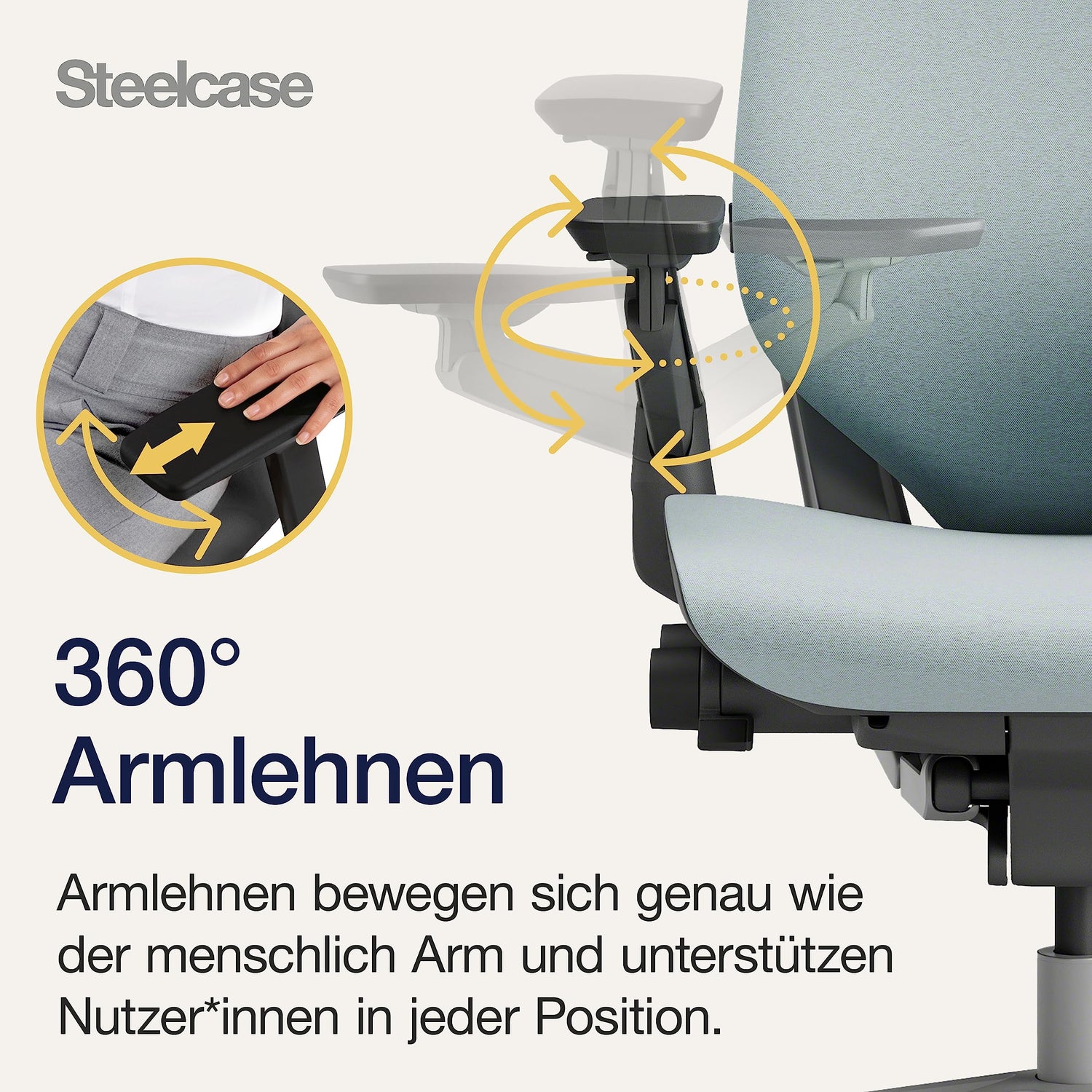 Steelcase Gesture Ergonomischer Bürostuhl mit 360° Armlehnen und 3D-Live Back Lumbalstütze Sturmhorizont