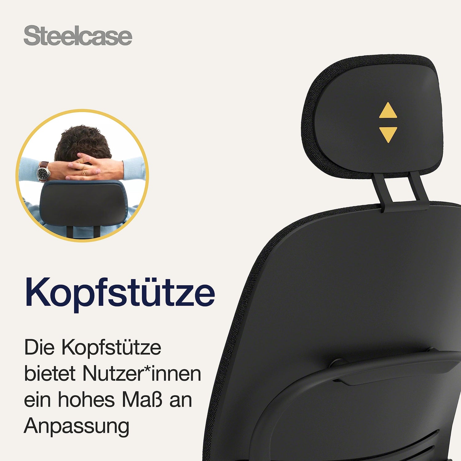 Steelcase Leap Ergonomischer Bürostuhl mit LiveBack Lumbalstütze, flexibler Rückenlehne, anpassbarer Kopfstütze Onyx Schwarz