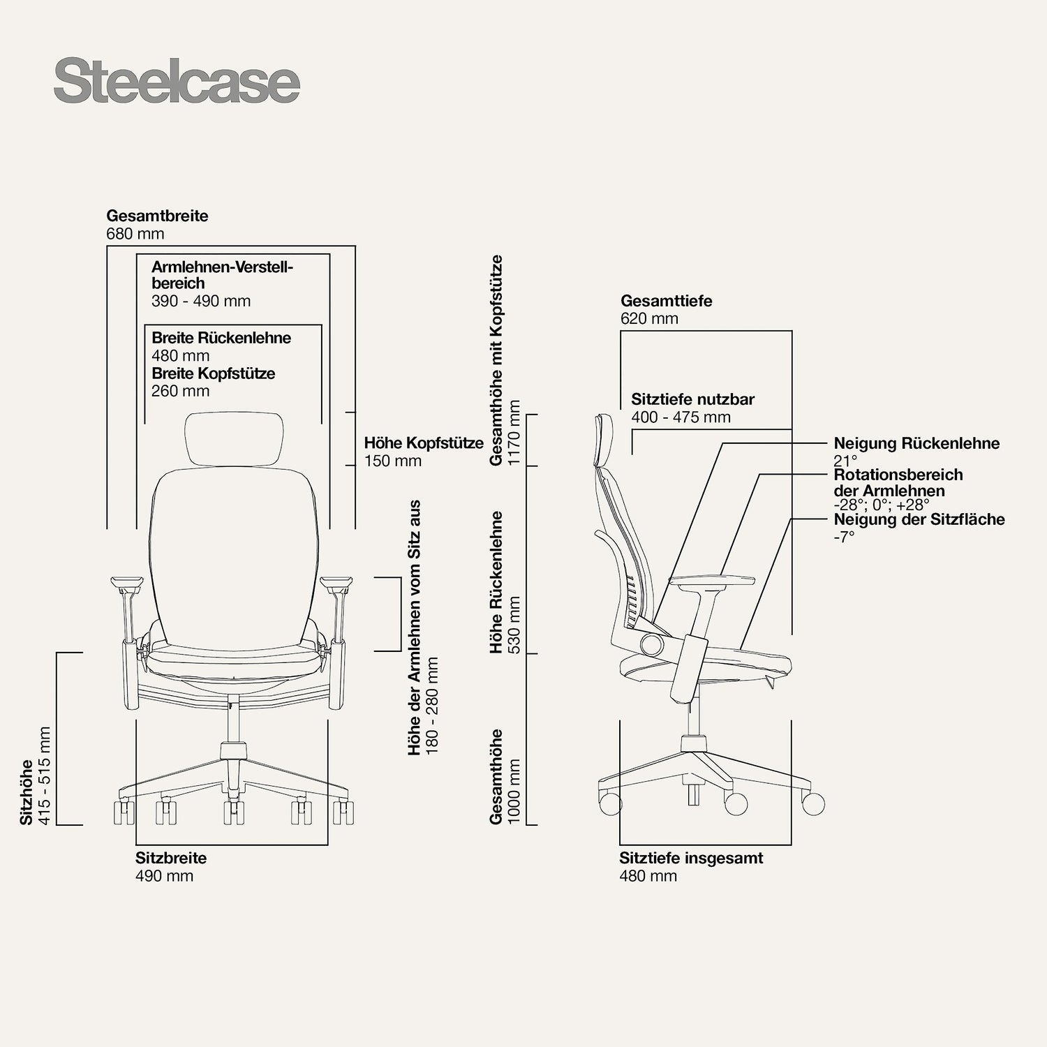 Einzelheiten: Leap ist der perfekte Stuhl für Menschen, die sich optimalen, auf sie zugeschnittenen Komfort wünschen. Alle Einstellungen für Leap lassen sich problemlos auf den Nutzer anpassen. Die S-förmige Rückenlehne mit der ‘LiveBack (TM)’ Technologie passt ihre Form an die Bewegungen des Nutzers an und sorgt dafür, dass die natürliche, gesunde S-Form der Wirbelsäule konstant beibehalten wird. Die höhen- und tiefenverstellbare Lumbalstütze für den mittleren und unteren Rücken kann individuell eingestellt werden, damit die Nutzer die optimale Unterstützung für die Wirbelsäue erhalten. Die patentierte ‚Natural Glide (TM)‘-Mechanik sorgt dafür, dass der Sitz nach vorne gleitet, sobald man sich zurücklehnt, damit man in jeder Körperhaltung ohne Unterbrechungen weiterarbeiten kann. Unser exklusives Sitzpolster nutzt eingebaute Lufttaschen, kann sich so dem Körper perfekt anpassen und verhindert aufgrund der flexiblen Sitzvorderkante die Entstehung von Druckstellen an den Oberschenkeln.