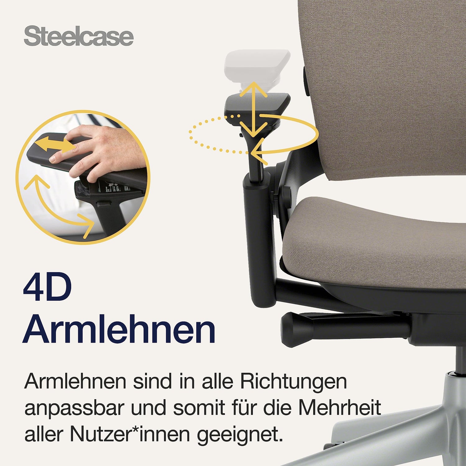 Steelcase Leap Ergonomischer Bürostuhl mit LiveBack Lumbalstütze, flexibler Rückenlehne, anpassbarer Kopfstütze Trüffel
