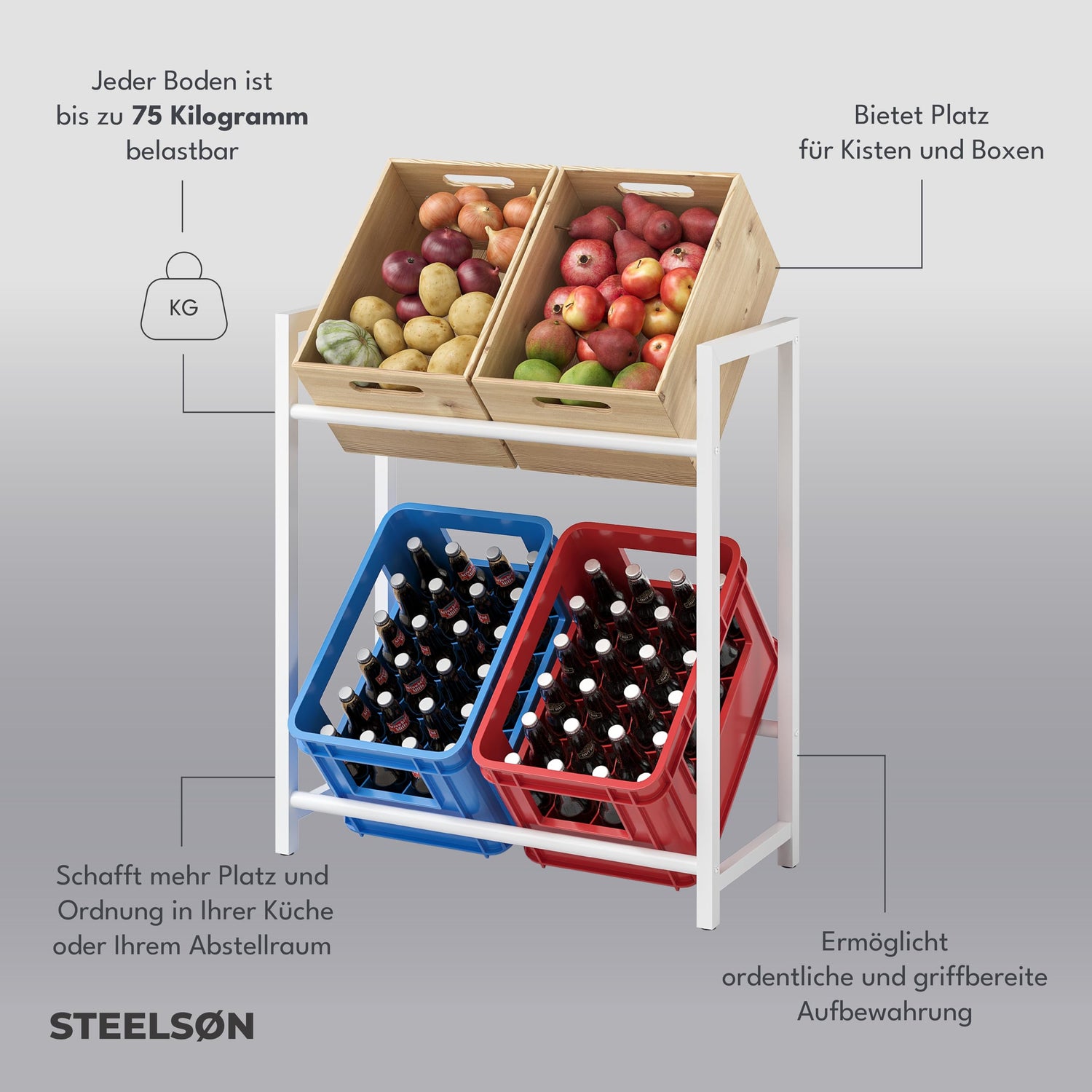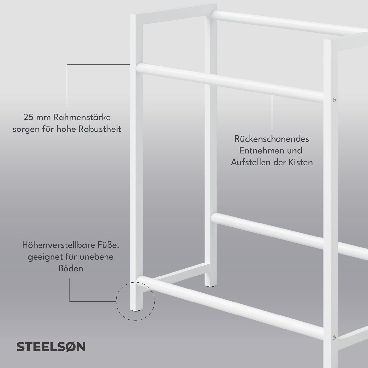 STEELSØN Getränkekistenregal Macondo aus Metall, 85H x 75B x 33T Kistenregal für 4 Kisten, Regale für Getränkeregal Weiß