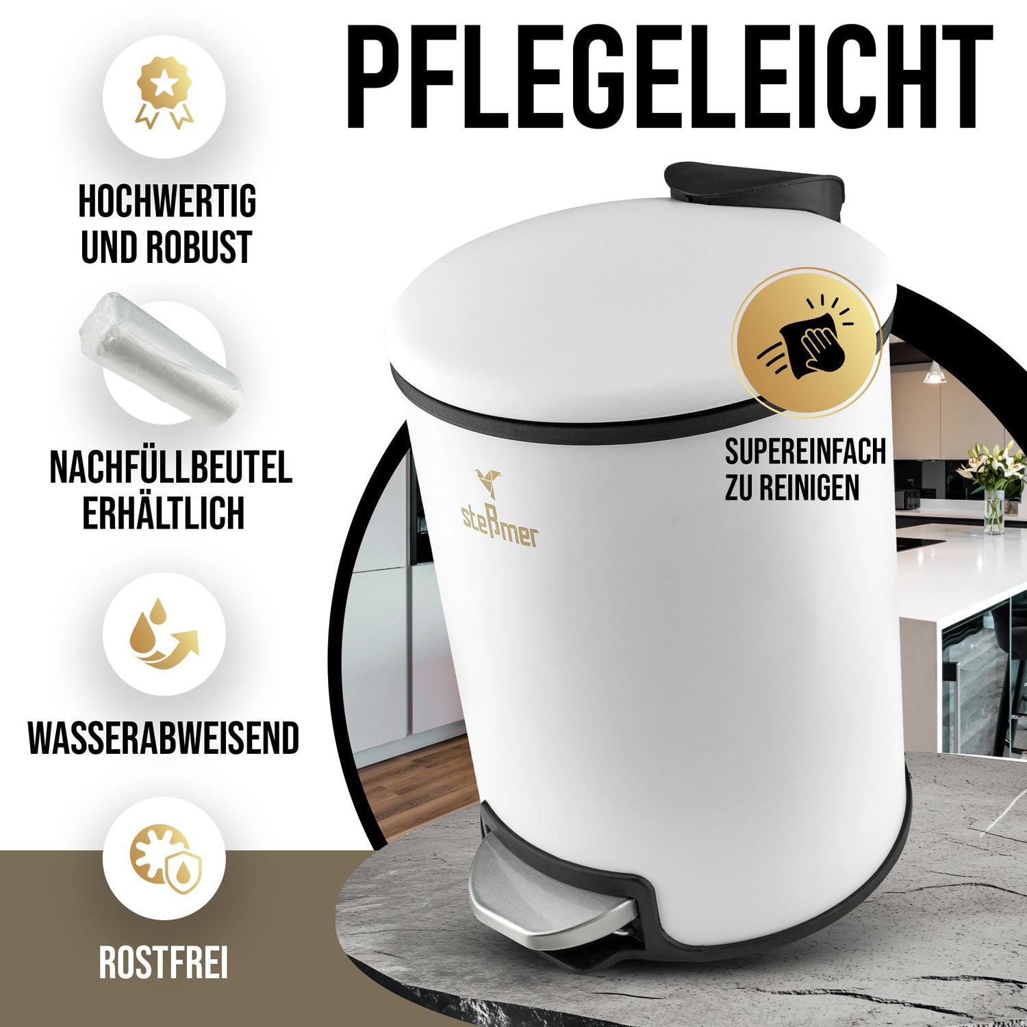 • ✅Erlebe die sorgenfreie Kombination aus Premium-Qualität und durchdachten Funktionen. Bestelle jetzt und genieße stressfreie, elegante Müllentsorgung – jeden Tag!