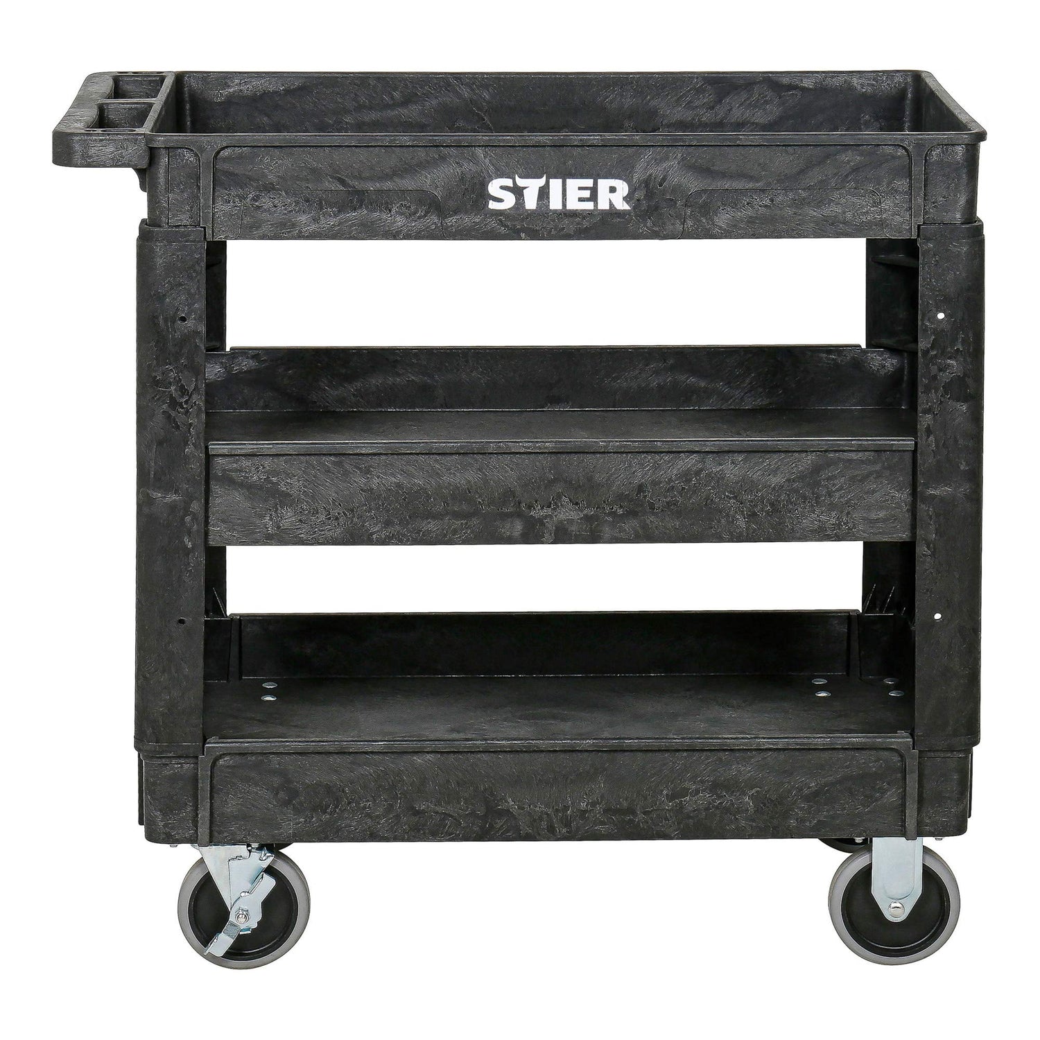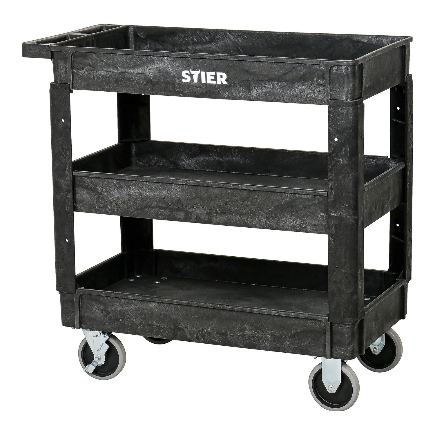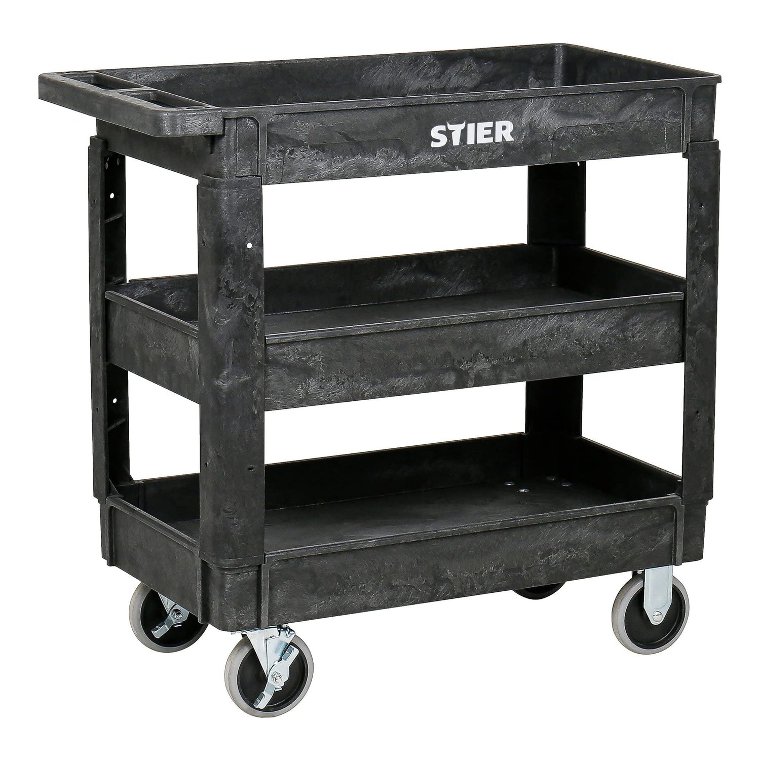 STIER Kunststoff-Vielzweckwagen, 3 Etagen, 250kg Tragkraft, 87x43x85cm, 2 Feststeller, Montagewagen, Werkzeugwagen, Rollwagen robust, Tool cart, Mehrzweckwagen