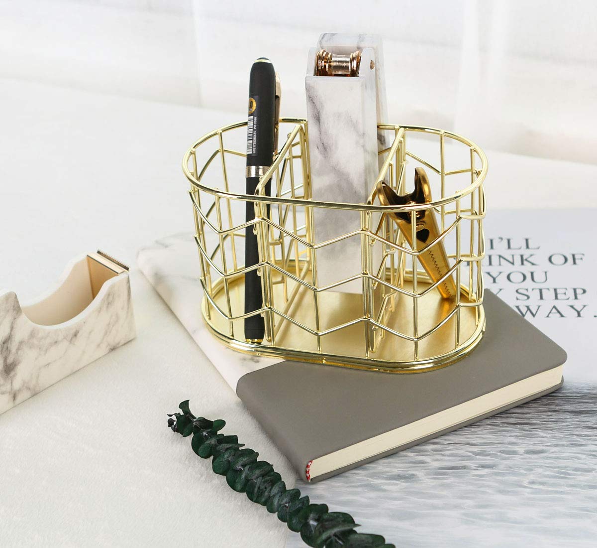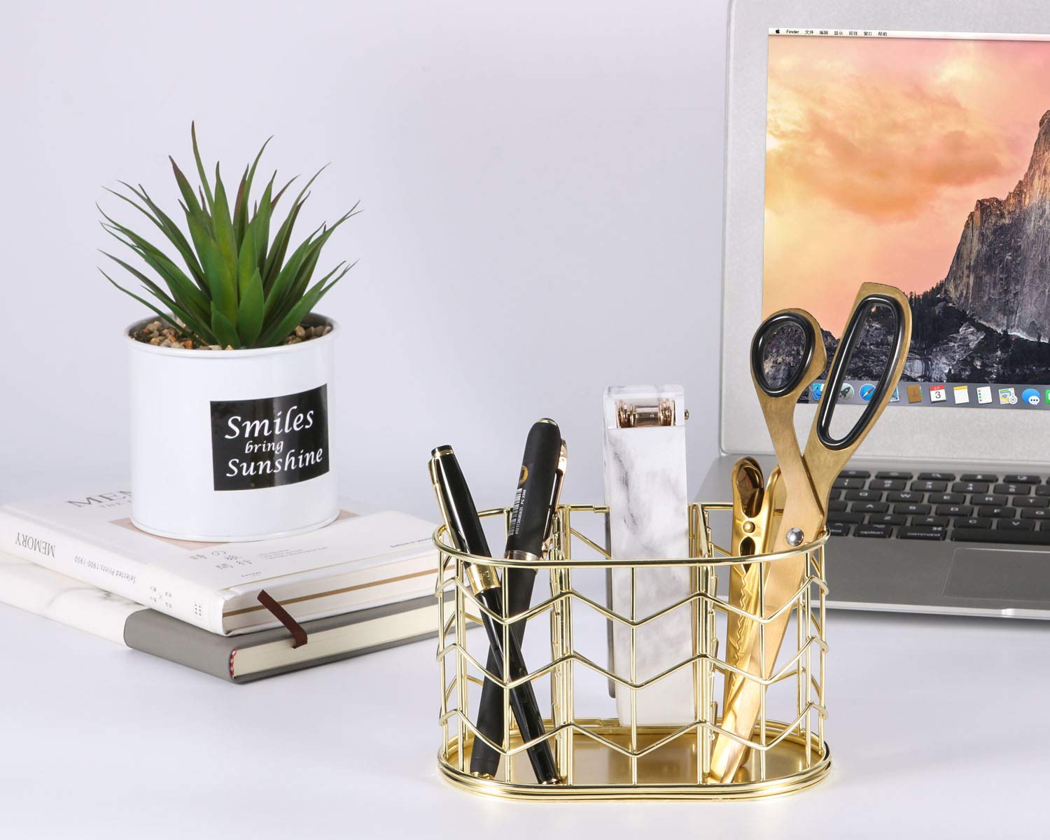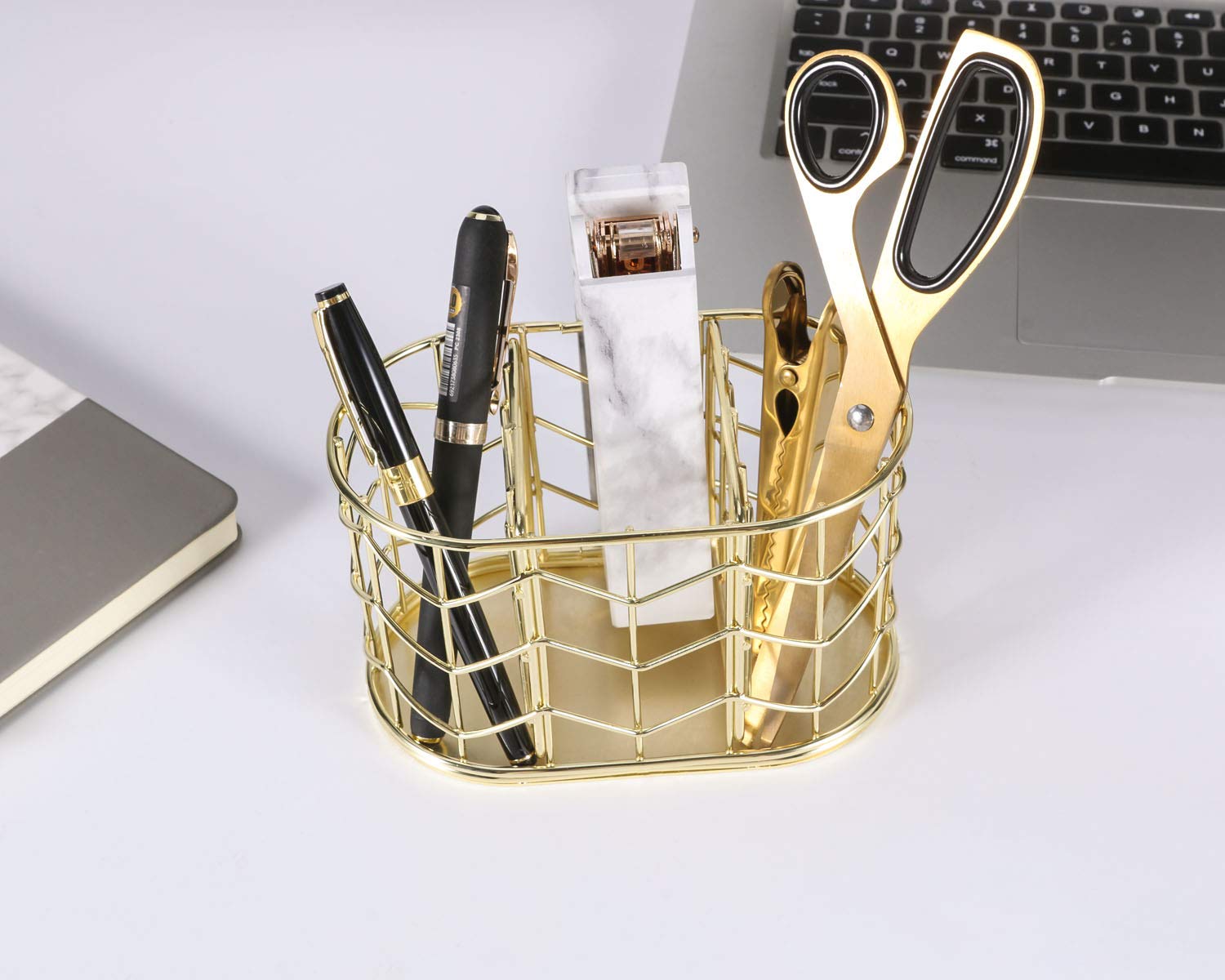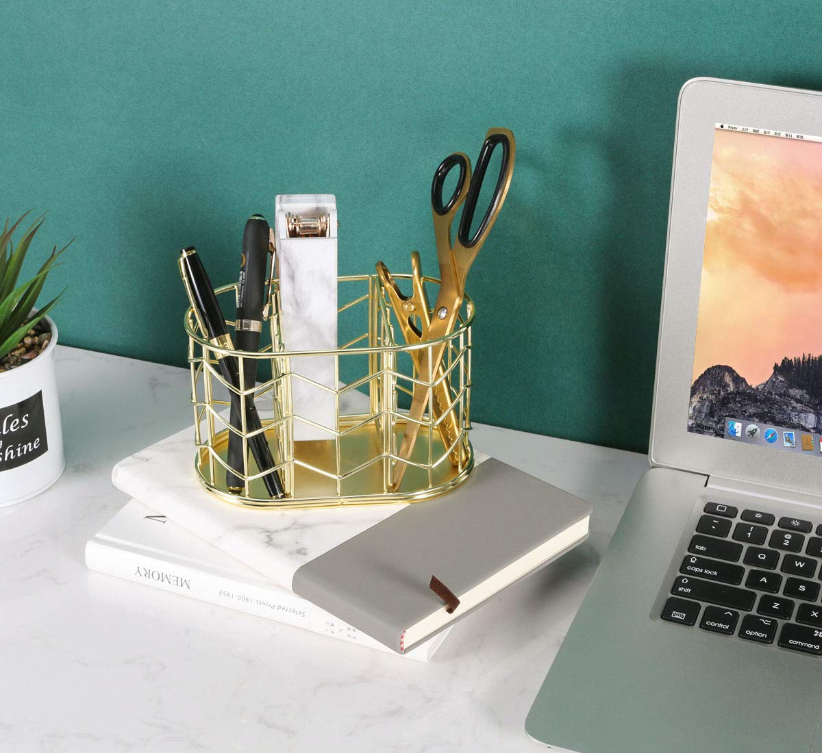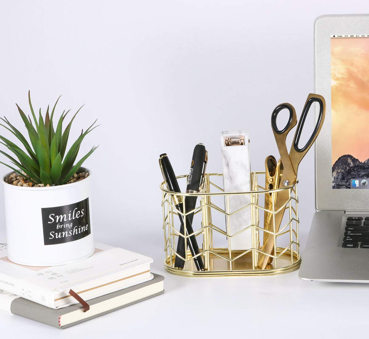• Trendy Wire Design - Das friedliche Wellenmuster in Gold lässt diesen Stifthalter leicht von normalen Typen abweichen, organisiert Ihre Schreibtischutensilien stilvoll und verleiht Ihren Desktops ein elegantes und modernes Aussehen.