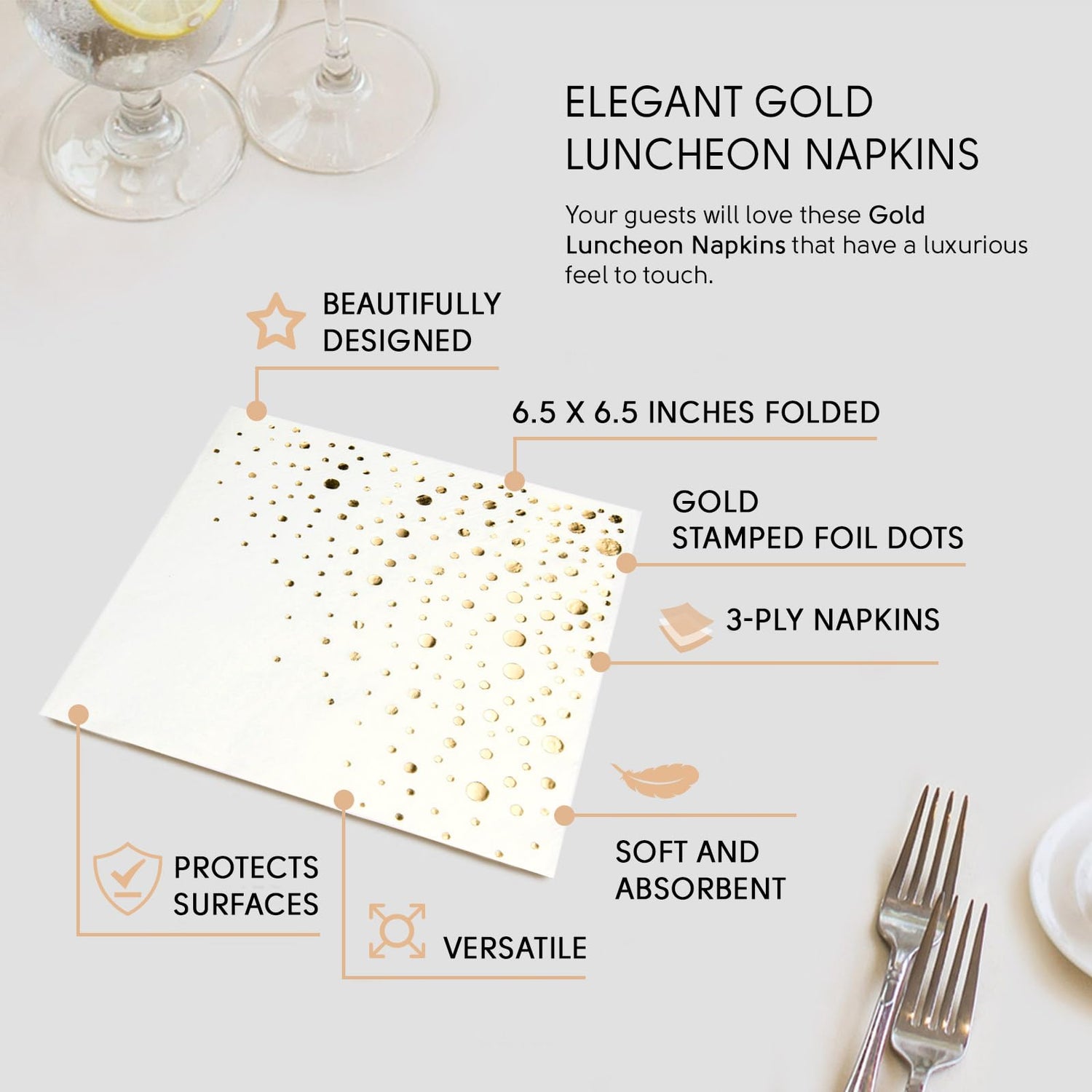 • Schaffen Sie eine Insta-würdige Party. Setzen Sie ein Statement und erhalten Sie Komplimente zu Ihrem besonderen Anlass mit diesen goldenen Lunch-Servietten – perfekt als Servietten für Hochzeitsempfang oder Servietten zum 50. Jahrestag