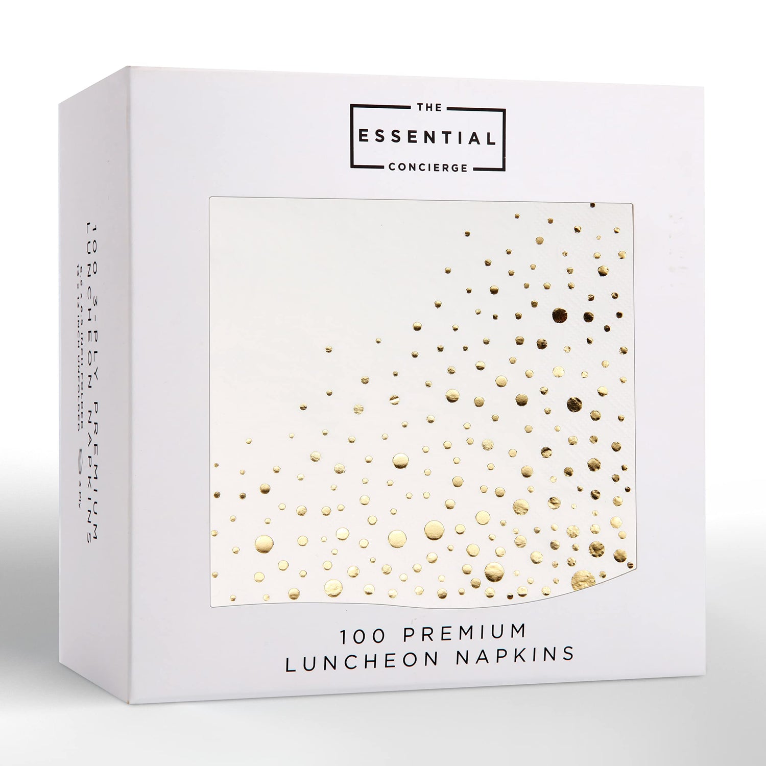 Stilvolle 16,5 x 16,5 cm goldene Servietten, 100 Stück weiße und goldene Lunch-Servietten, verleihen Sie Ihrer Veranstaltung Glanz mit Partyservietten, 3-lagige goldene Papierservietten,
