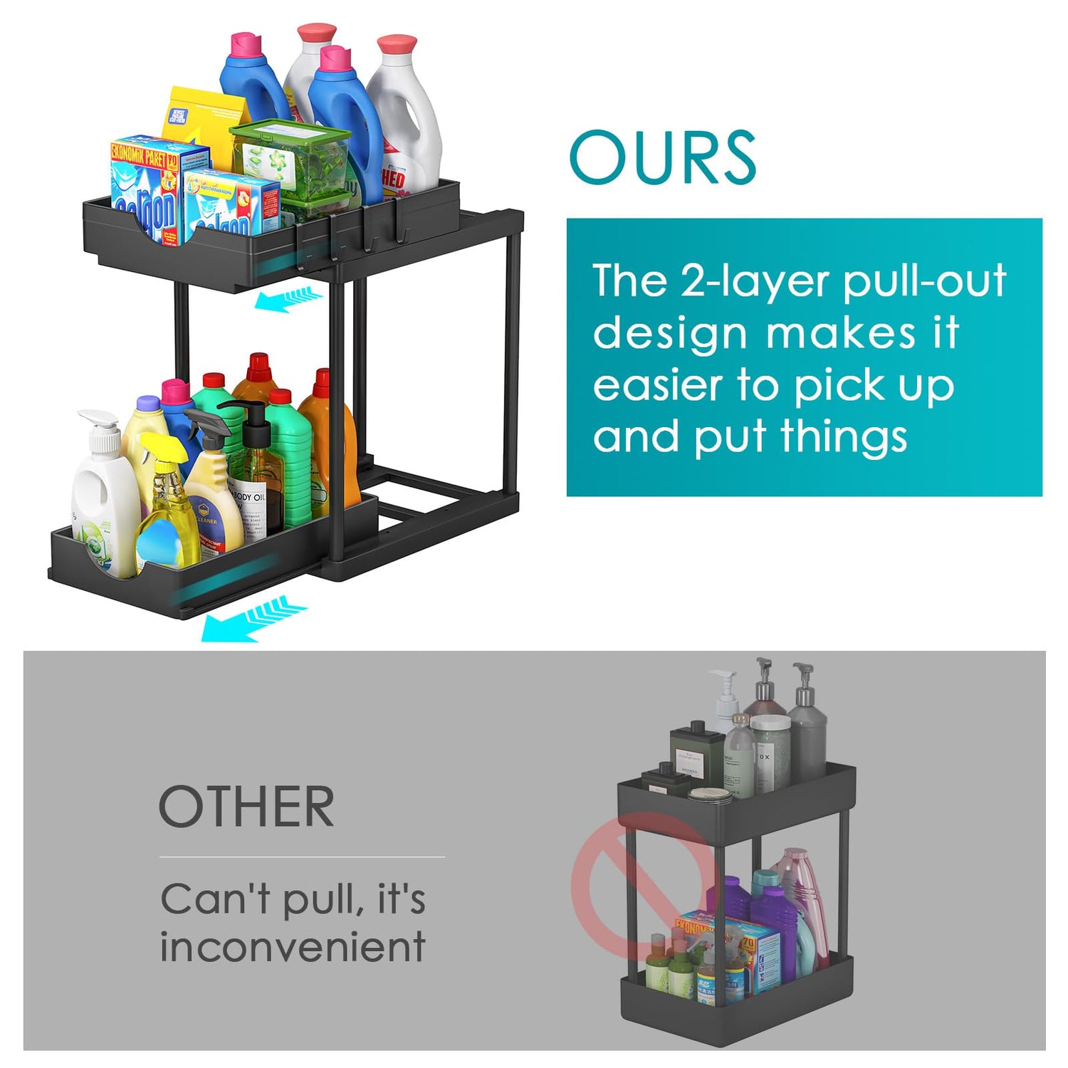 StowBin Küchen Organizer, 2 Pack Unter Waschbecken Regal mit 4 Haken, Spülschrank Organizer, Badezimmer Organizer, Schrank Organizer, Ordnungssystem für Küche