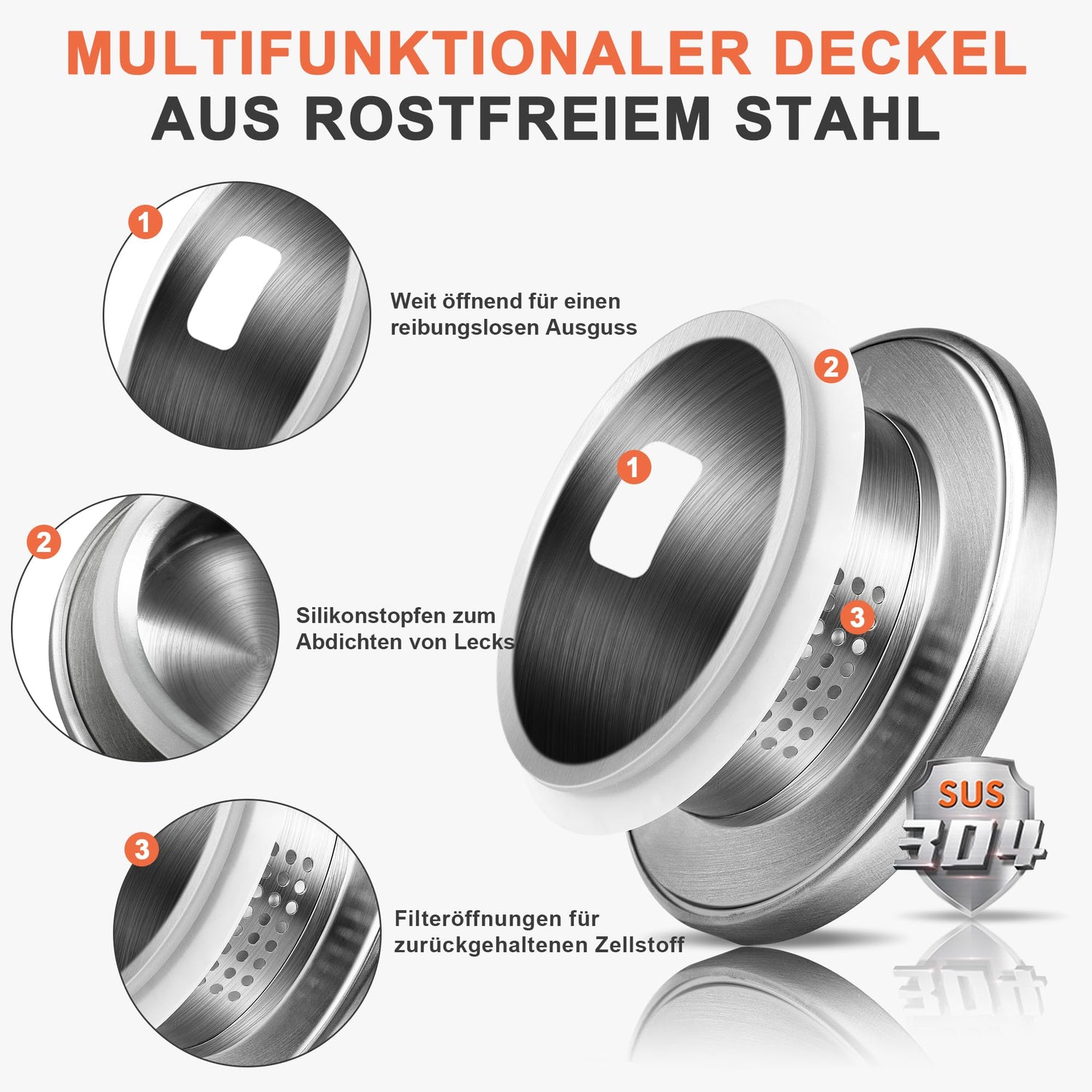 • Entwickelt für hausgemachte Getränke: Dieser Glaskaraffe wird mit einem Deckel aus 18/8-Edelstahl mit zwei Öffnungen geliefert, der nach Belieben angepasst werden kann, sodass Sie Fruchtfleisch und Eiswürfel einfach aufbewahren oder Getränke schnell einschenken können. Der tropfsichere Ausgießer und der ergonomische Griff machen das Ausgießen zum Kinderspiel, und das lebensmittelechte Silikon um den Deckel liegt eng am Körper der Kanne an, um ein Benetzen der Arbeitsplatte zu vermeiden