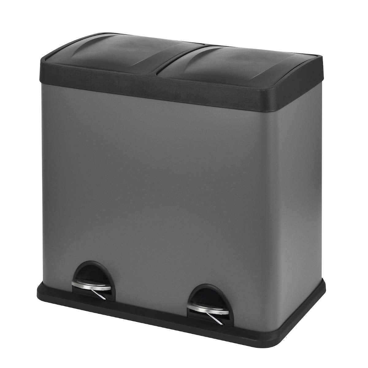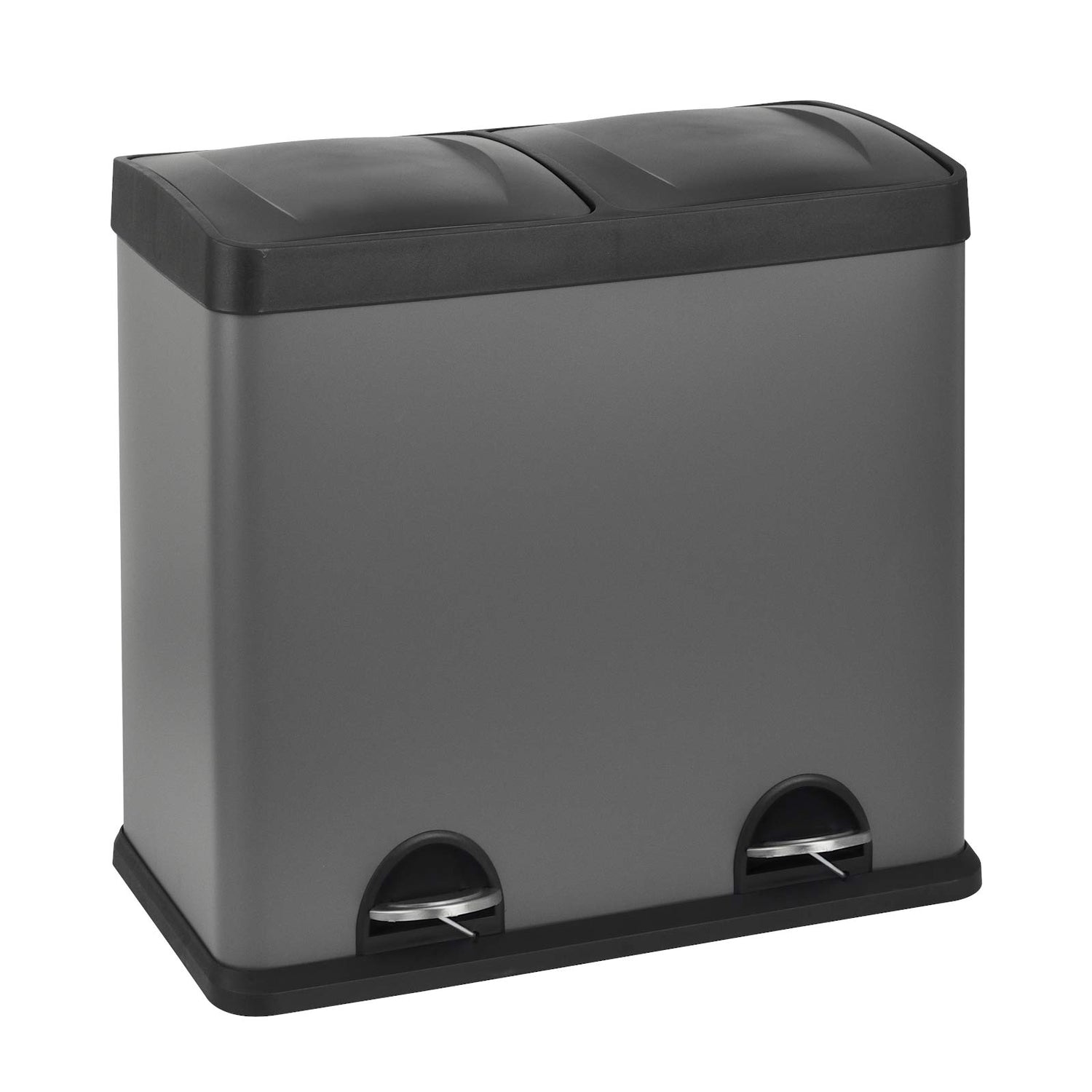 SVITA T2X24 Mülleimer 48 Liter Grau 2 x 24L Treteimer Abfalleimer Mülltrennung mit Schubfächern