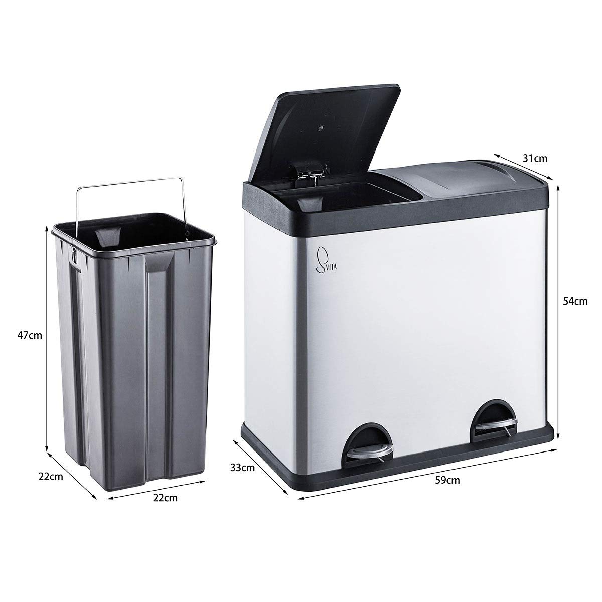 • Gesamtmaße: ca. 54 x 59 x 33 cm (HxBxT) - Inneimer-Maße: ca. 47 x 22 x 22 cm (HxBxT) - Fassungsvermögen: ca. 48 Liter (2x 24 L)