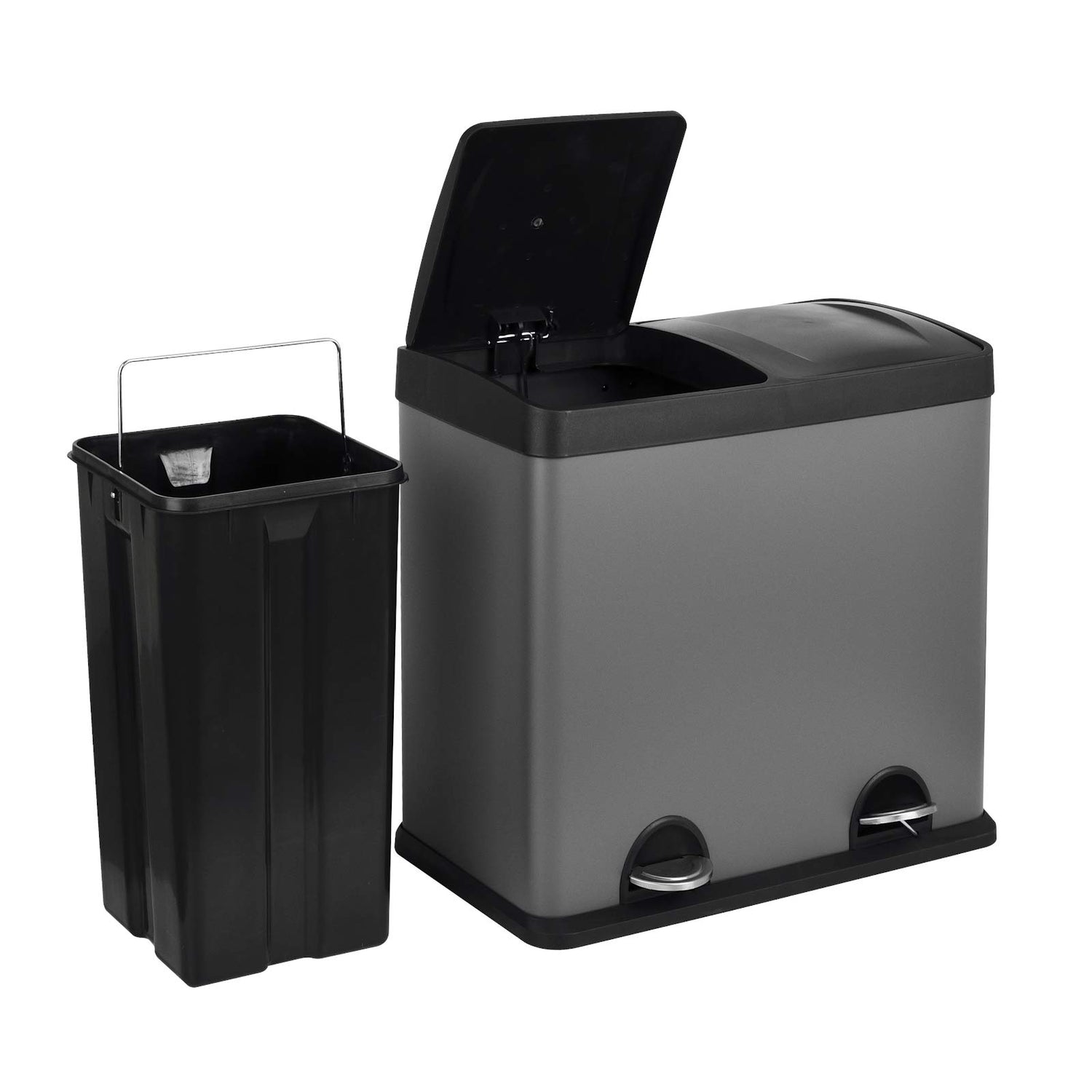 • Rutschfeste Pedale - Inneneimer mit Metallbügel für ein hygienisches und kinderleichtes Ausleeren - optimale Mülltrennung