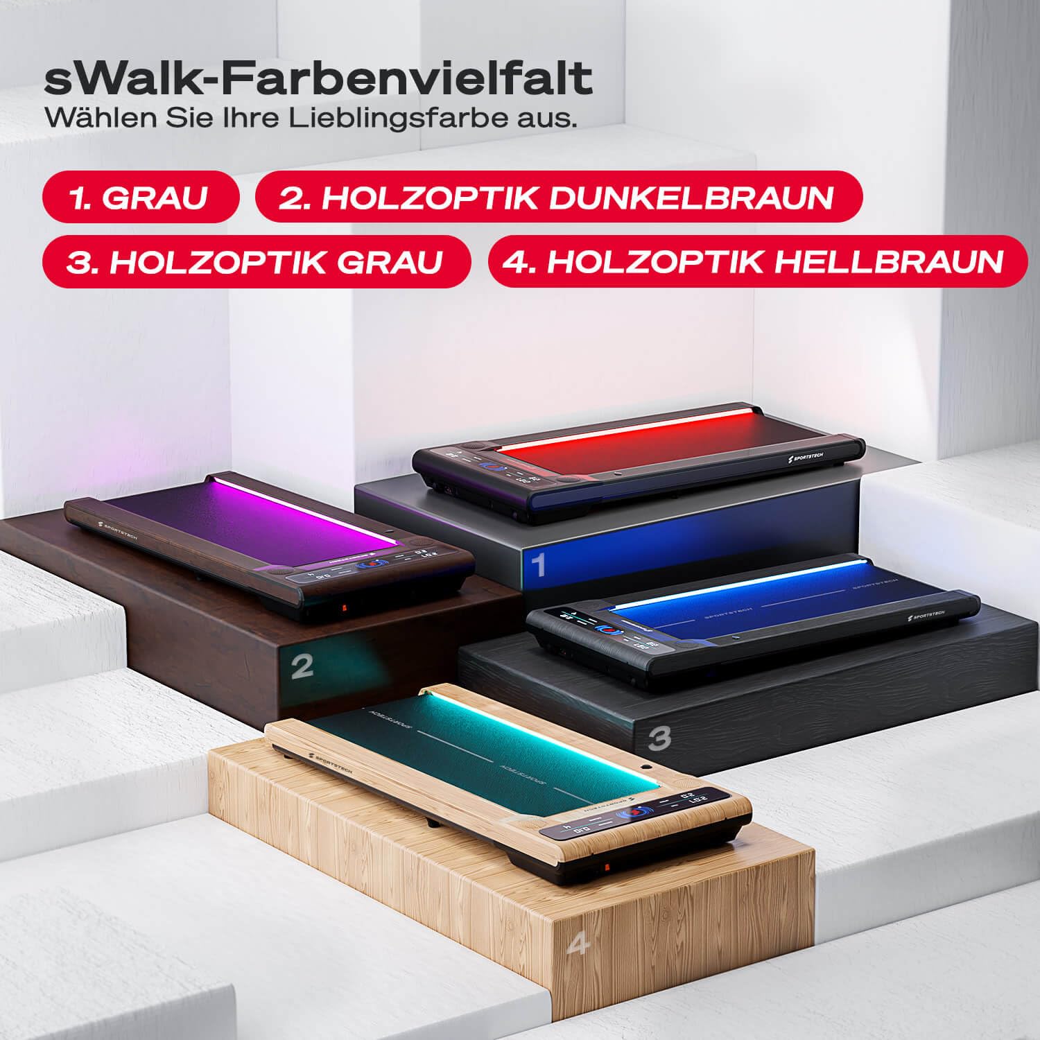 sWalk Walking Pad Laufband mit LED - Deutsche Qualitätsmarke - 1-6 km/h Geschwindigkeit mit interaktivem LCD-Display & App kompatibel - Flexibles Under Desk Schreibtisch Treadmill für Zuhause & Büro