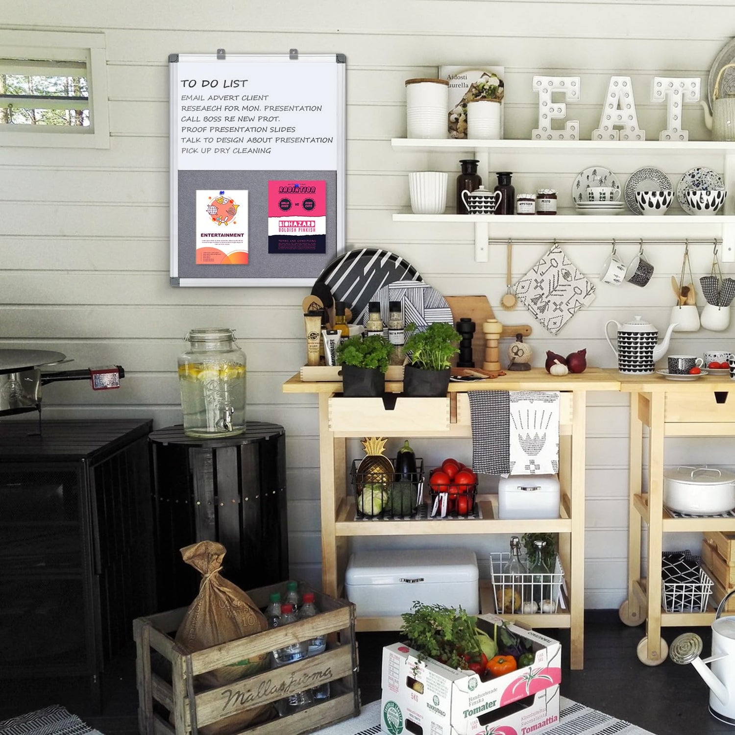 Swansea Whiteboard Magnettafel und Pinnwand Filz mit Aluminiumrahmen für Wohnung, Büro, Küche und Schule, 60X45cm