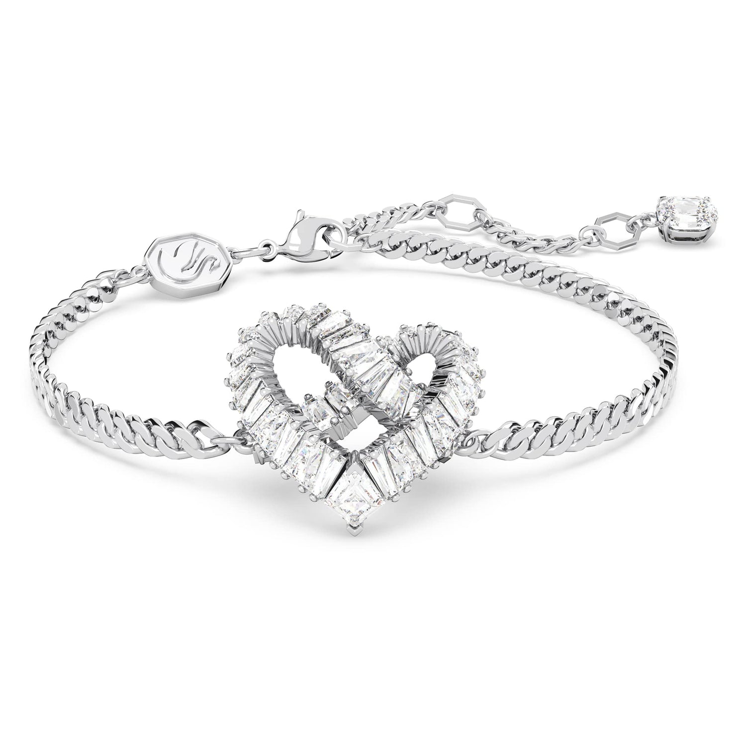 Swarovski Matrix Armband, Rhodiniertes Damenarmband im Herz-Design mit Weißen Kristallen