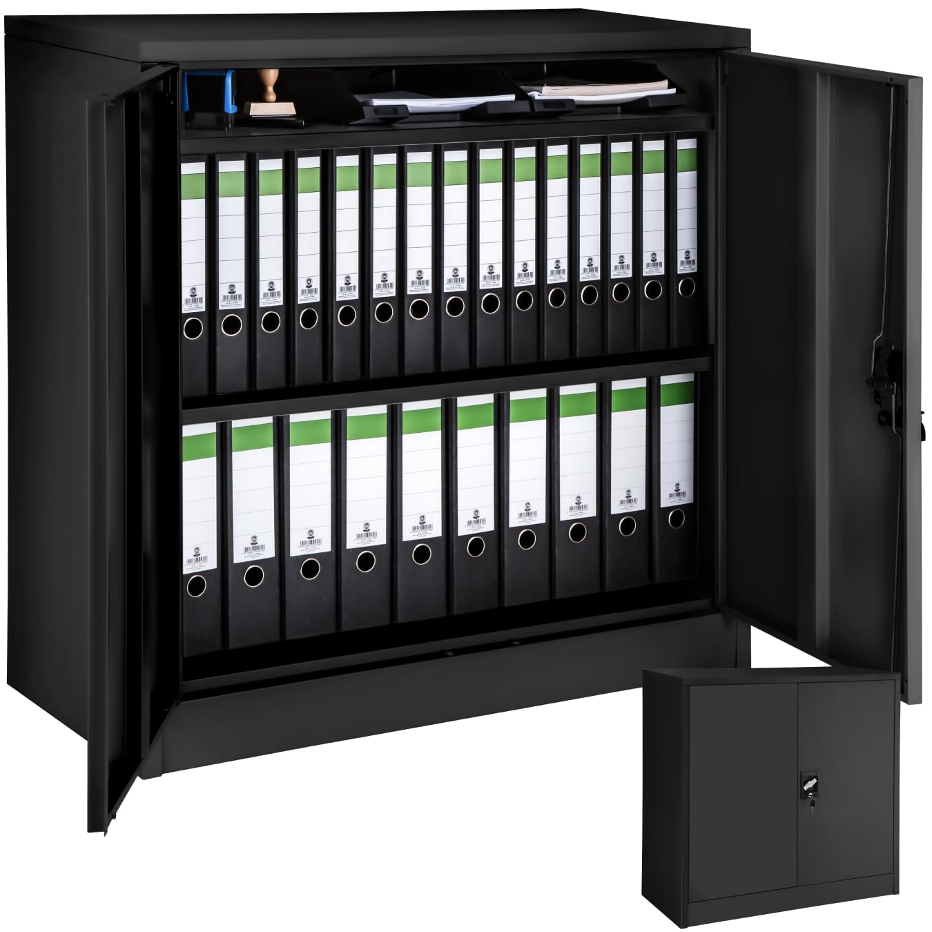 Der robuste Stahlkorpus mit Pulverbeschichtung garantiert Langlebigkeit und Schutz, während das hochwertige Sicherheits-Zylinderschloss mit zwei Schlüsseln deine Dokumente und Wertgegenstände zuverlässig sichert. Dank kompakter Maße eignet sich der Schrank sowohl fürs Büro, Home-Office als auch für Werkstatt oder Haushalt.
