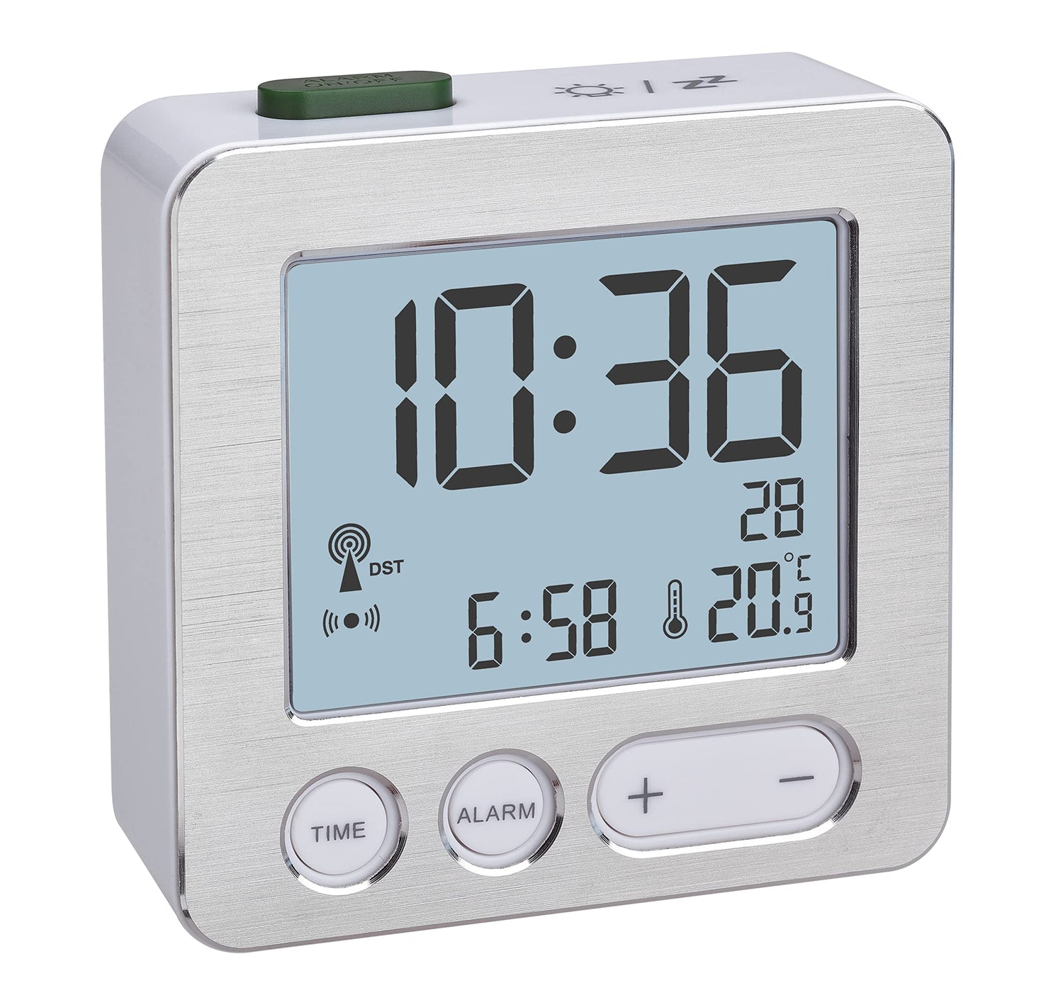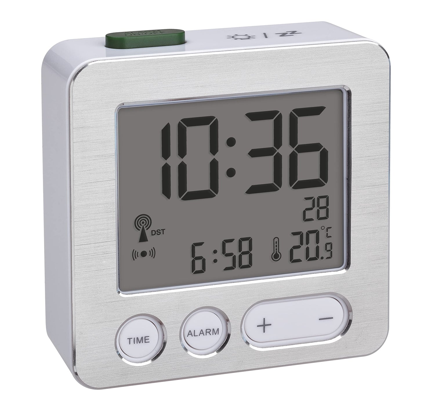 TFA Dostmann 60.2545.54 Digitaler Funk-Wecker, Kunststoff, Weiß/Silber, L 66 x B 22 x H 68 mm