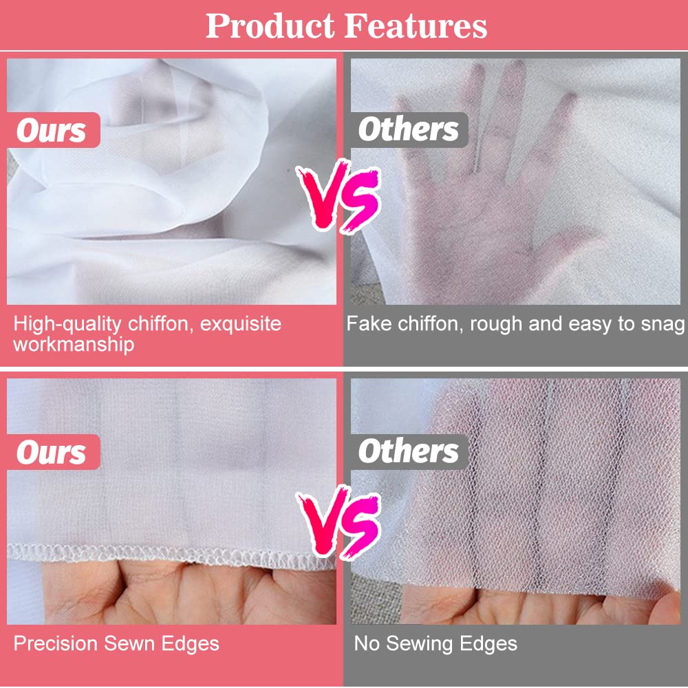- 👰【Präzises Säumen ohne losen Faden】Die Größe des Chiffonstoffs beträgt 550 x 70 cm, aufgrund des manuellen Schneidens und Nähens kann es zu einem Unterschied von 2-3 cm kommen. Präzise gesäumt, nicht leicht zu reißen, Hakengarn, sieht strukturierter aus als gewöhnlicher Chiffon, leichter und weicher, sehr einfach aufzuhängen, zu entfernen, zu reinigen und wieder anzubringen.