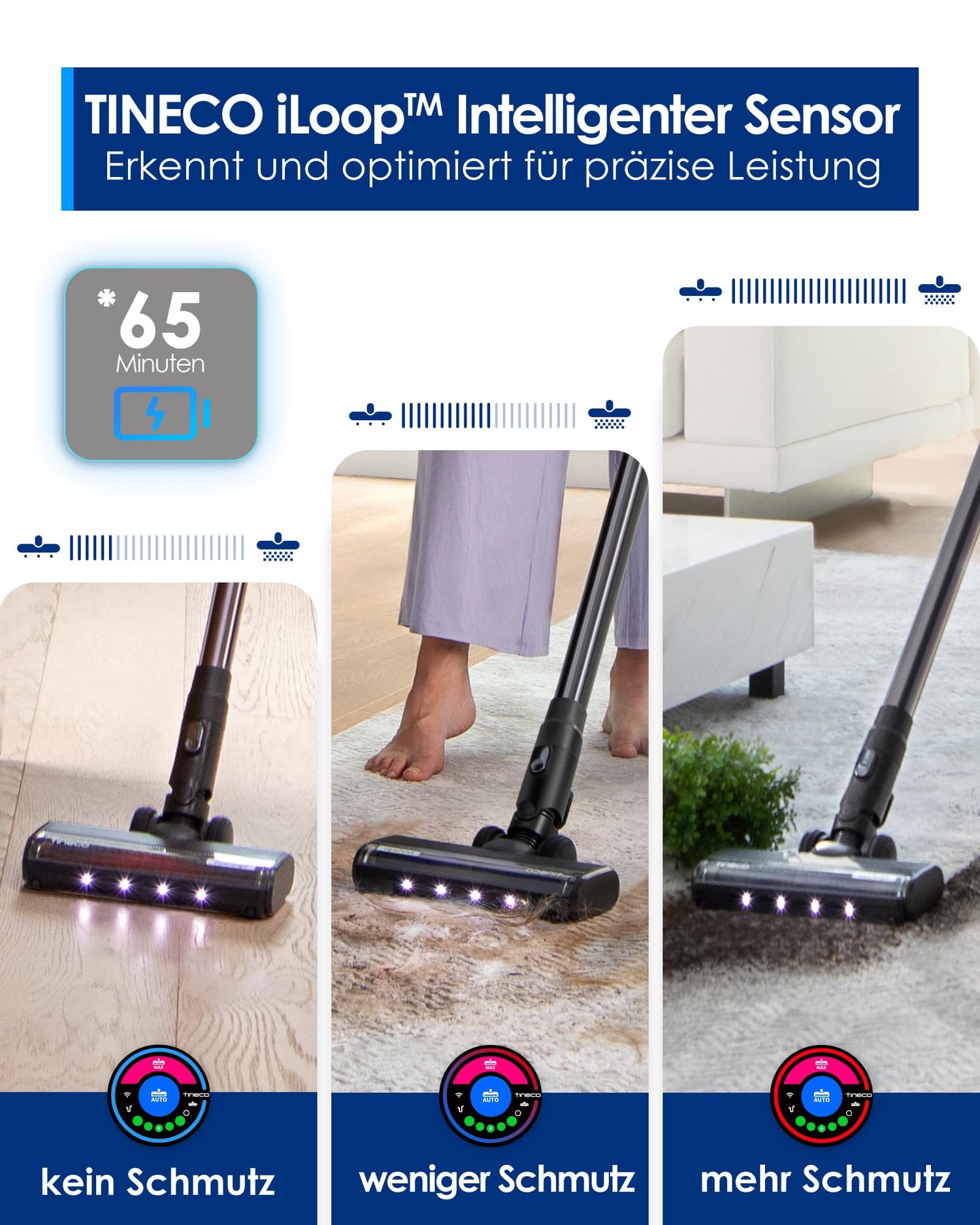 • 【Intelligenter mit Tineco iLoop】Der Smart Sensor sorgt für eine präzise Absaugung. Der Staubsauger liefert eine präzise Saugleistung je nach erkannter Verschmutzung und verbessert so die Reinigungseffizienz; die Station optimiert die Selbstreinigungszeit je nach Verschmutzungsgrad für eine gründliche Selbstreinigung.