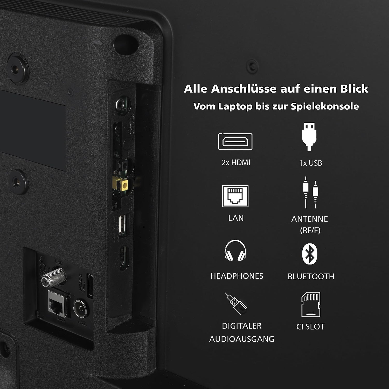 - MEHR ALS NUR EIN FERNSEHER - Der Flachbildschirm verfügt über eine Bildschirmdiagonale von 80 cm (32 Zoll). Über den integrierten Triple-Tuner empfangen Sie Fernsehen über Antenne (DVB-T2), Kabel (DVB-C) oder Satellit (DVB-S2) direkt auf dem Fernsehgerät. Ein zusätzlicher Receiver wird nicht benötigt.