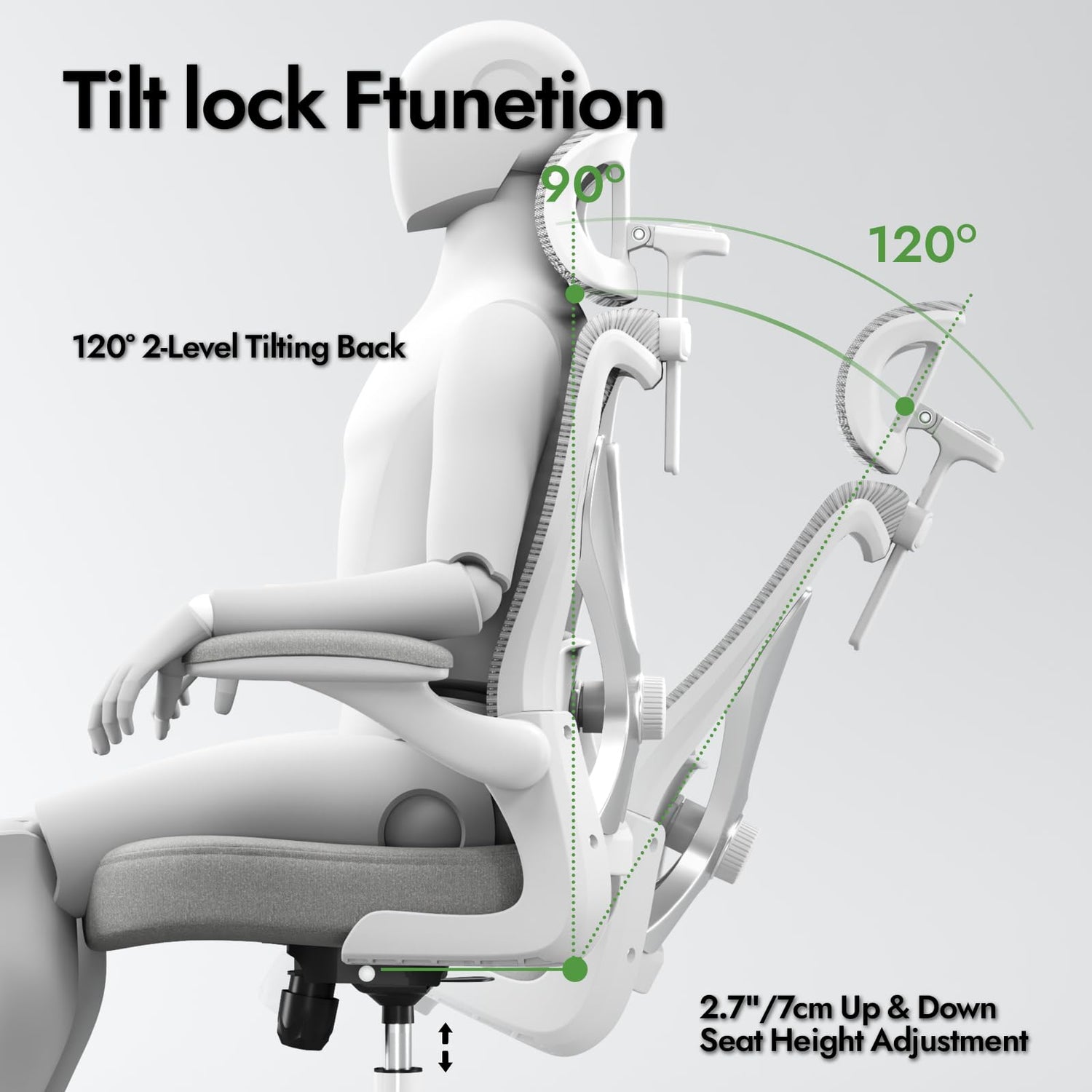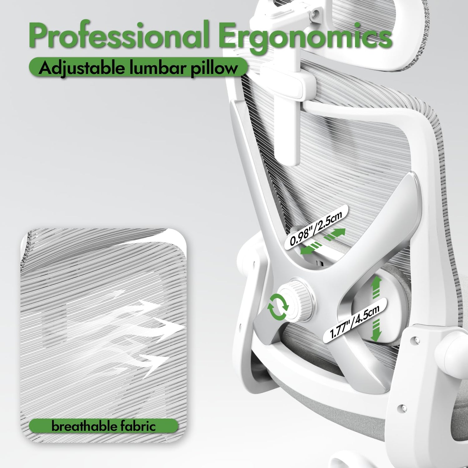 • Ergonomischer Bürostuhl: Erleben Sie beispiellose Unterstützung mit unserem ergonomischen Bürostuhl, entworfen, um umfassende Unterstützung für Ihren Kopf, Rücken, Hüften und Arme zu bieten. Maßgeschneiderte Lendenwirbelstütze sorgt für Ihren Komfort und Wohlbefinden. Geeignet für Personen von ca. 5'5" bis 6'2". Sitzhöhe, Kopfstütze, Rückenlehne und aufklappbare Arme lassen sich leicht anpassen, um den unterschiedlichsten Bedürfnissen gerecht zu werden und bieten bequemen Halt während längerer Sitzzeiten