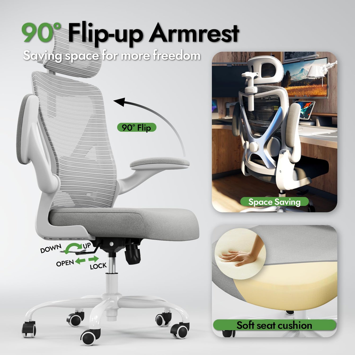 Einzelheiten: TRALT Bürostuhl Ergonomischer Schreibtisch Stuhl, 330 LBS Home Mesh Büro Schreibtisch Stühle mit Rädern, Bequemer Gaming Stuhl, High Back Office Stuhl für lange Stunden, Bürostuhl für Studium und Arbeit