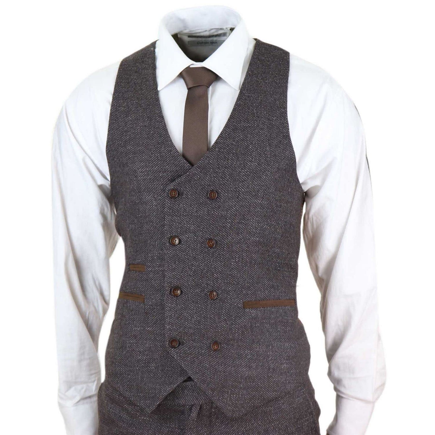 • Premium Wollenanteil Tweed Design Stoff, Doppelt Breasted Design Weste