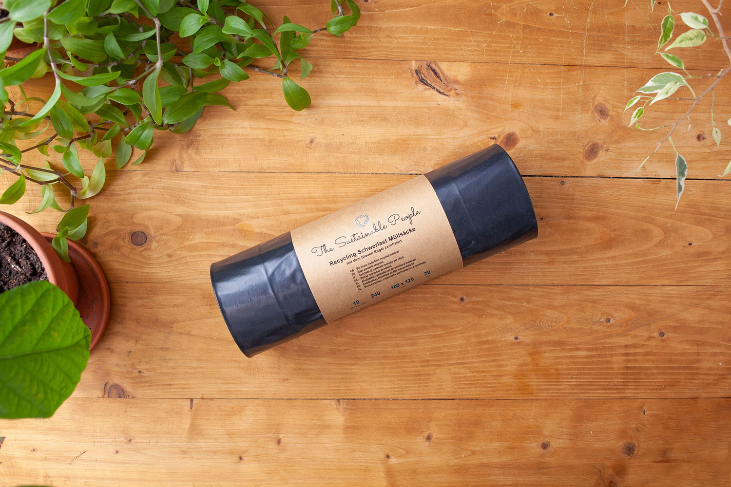 TSP Recycling Schwerlast Müllsäcke 240 Liter, eine Rolle mit 10 Abfallsäcken. Diese Müllsäcke wurden in der EU hergestellt und sind mit dem Blauen Engel zertifiziert. Der Umwelt zuliebe bestehen die Beutel zu 100 % aus Recycling-Material (PE, mind. 90 % Post-Consumer-Abfälle z. B. aus der haushaltsnahen Wertstoffsammlung wie dem Gelben Sack). Recycling Schwerlast Müllsäcke von The Sustainable People schonen damit die Ressourcen, da für das Ausgangsmaterial kein neues Erdöl gefördert werden muss. Gegenüber der Produktion von Neugranulat entsteht beim Recycling von PE deutlich weniger CO2. Mit einer Stärke von 70 µm sind diese Müllsäcke ideal, wenn besonders viele, auch schwerere Abfälle entsorgt werden müssen. Dank der Größe von 100 x 125 cm passen die Beutel in gängige 240 Liter Müllsackständer.