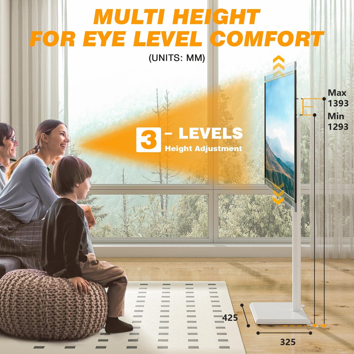 • Anpassbares Seherlebnis: Genießen Sie ein komfortables Seherlebnis mit unserem TV-Bodenständer, der über 3 Höheneinstellungen von 1293mm bis 1392mm und einen 35° links-rechts Schwenk verfügt, um den perfekten Winkel zu gewährleisten