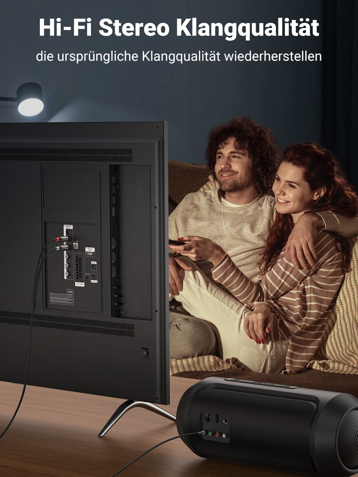• Stabile Audio-Signalübertragung: Mehrere Abschirmschichten von UGREEN Klinke Chinch Kabel blockieren externe elektromagnetische Störungen, was gemeinsam für eine stabile und klare Audioübertragung sorgt, stellt Klangdetails wieder her und bietet ein Hörerlebnis auf HiFi-Niveau.