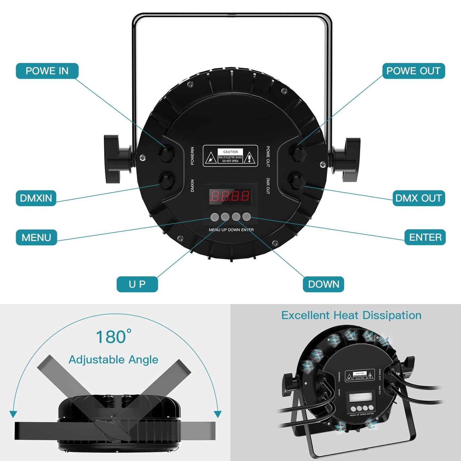 • 180W RGBW LED: 18pcs High Hellness Rot, Grün, Blau und Weiß 4 in 1 LEDs, mit ausreichender Lampenleistung, reiner und voller Farbe und einstellbarer Helligkeit ermöglicht in jedem Wetter Outdoor-Events