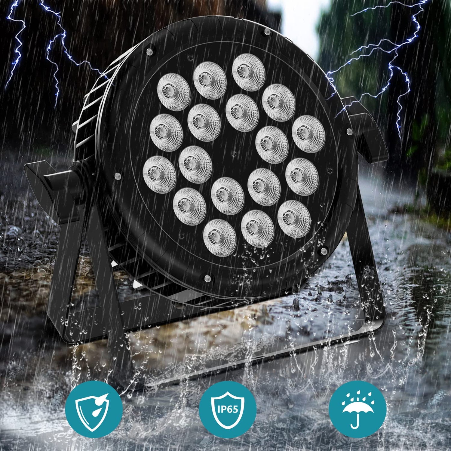 • IP65 Wasserdichte Par LED: LED Par outdoor wasserdicht dass ein Vollguss Aluminium Shell Design, wasserdichten Silikonstab annimmt, Hochwertige Gummi-Netzkabel werden mit schwarzen wasserdichtem Dichtungsmittel hinzugefügt, die Stabilität