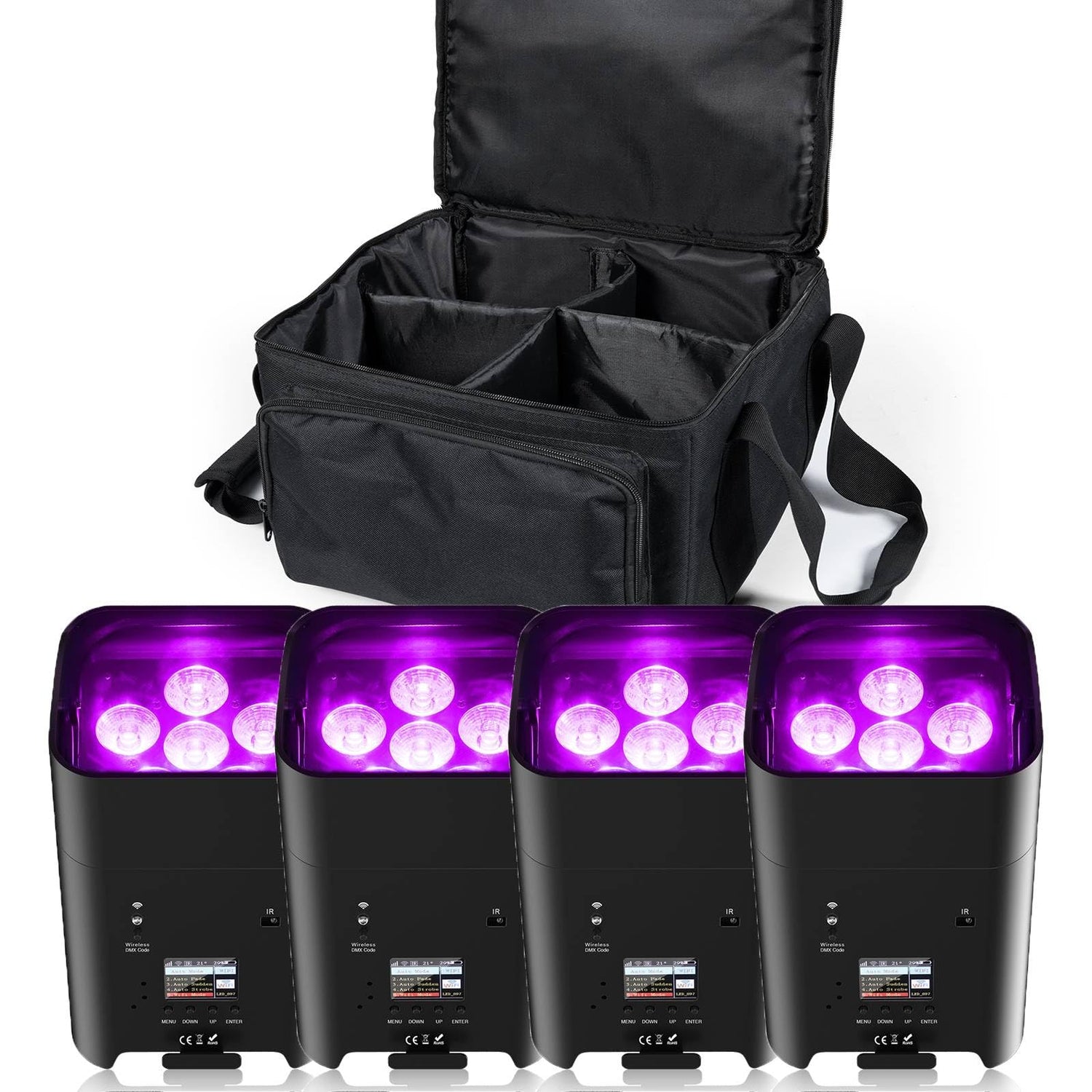 UKing 4er 108W RGBWA+UV Akku LED Par Scheinwerfer Wiederaufladbarer mit Tasche und Fernbedienung, APP/DMX partylicht Bühnenlicht für DJ disco Bar KTV Hochzeit