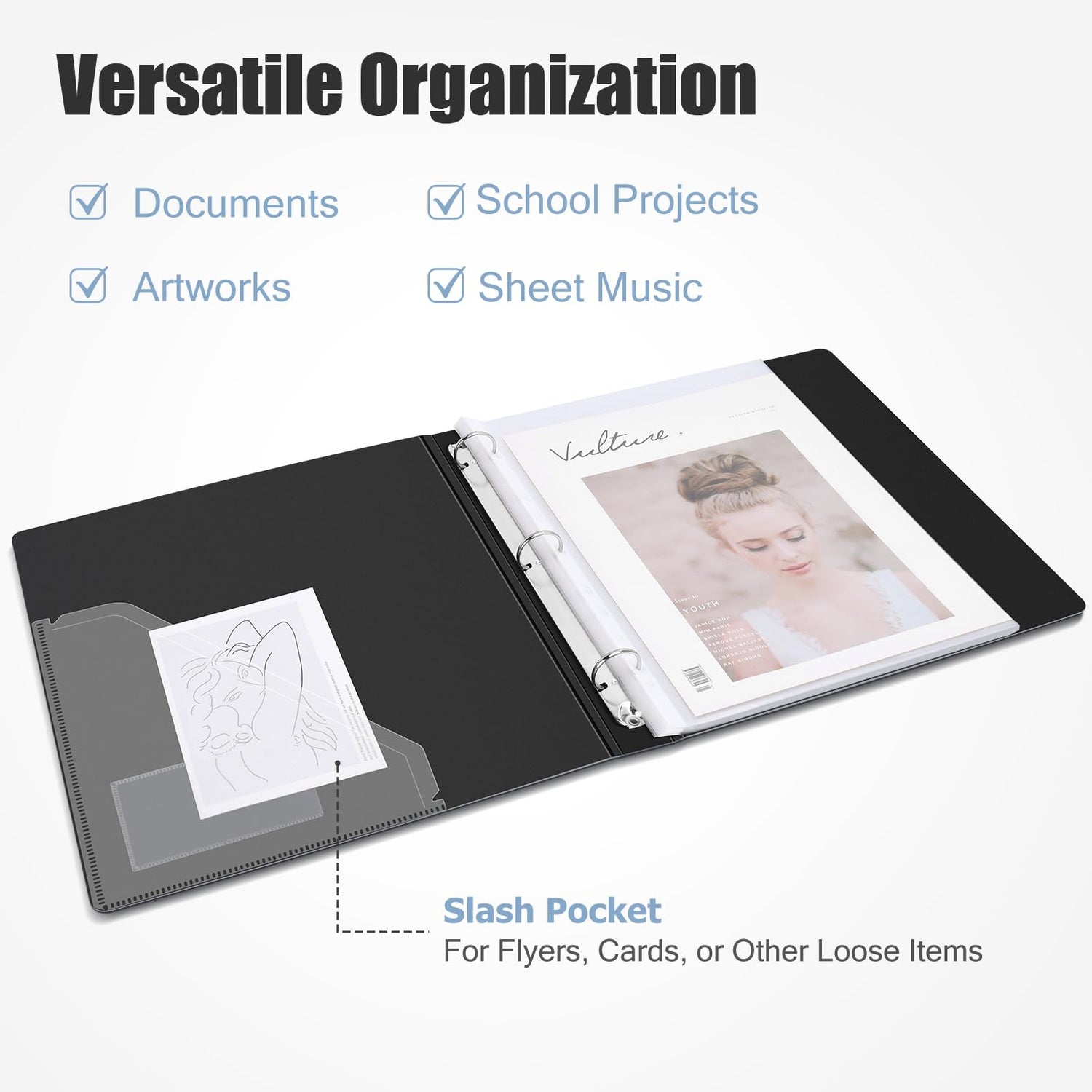 • Flexibles Design für einfache Aktenorganisation: Das 3-Ring-Binder-Design ermöglicht es, die klarsichthüllen nach Belieben zu entfernen, hinzuzufügen oder neu anzuordnen