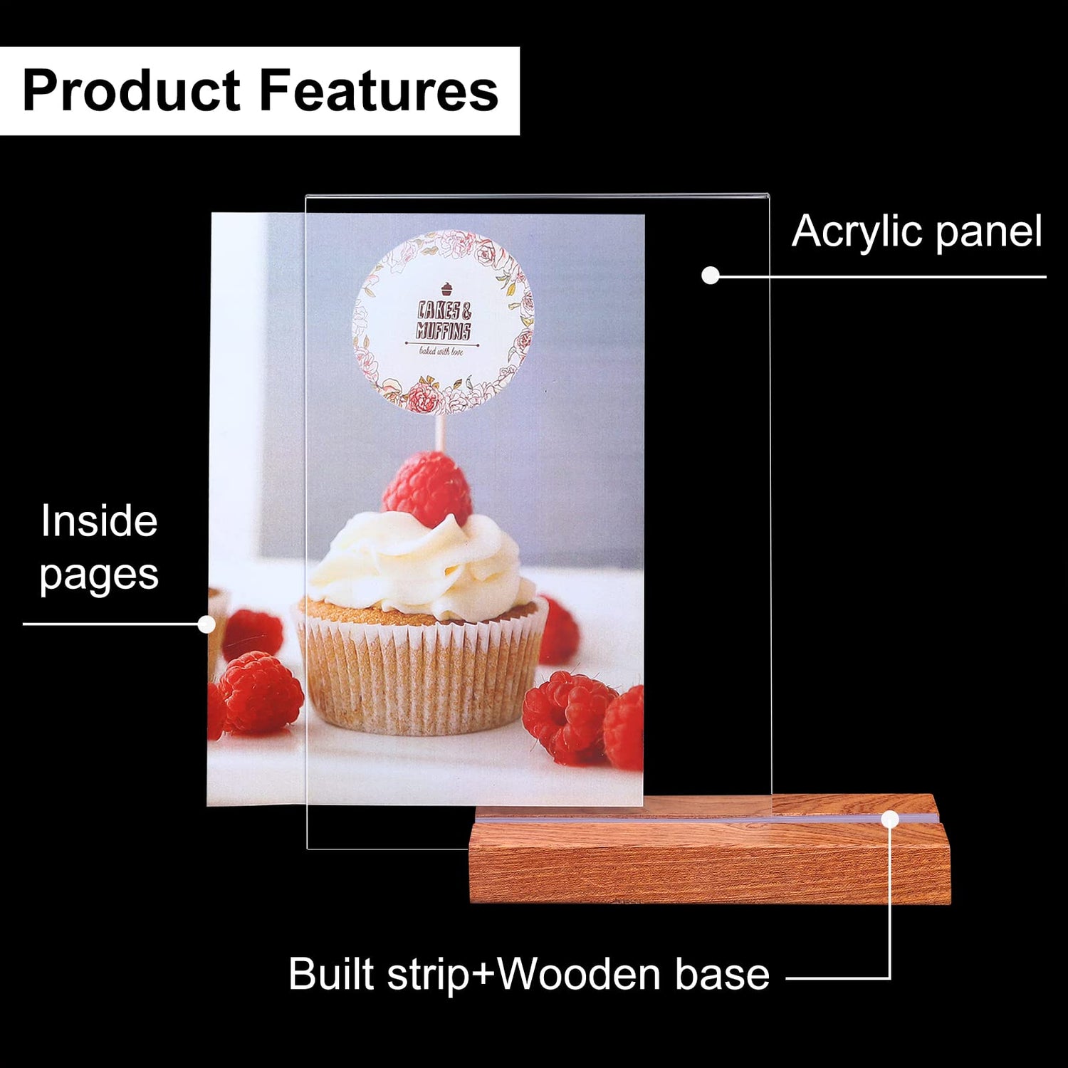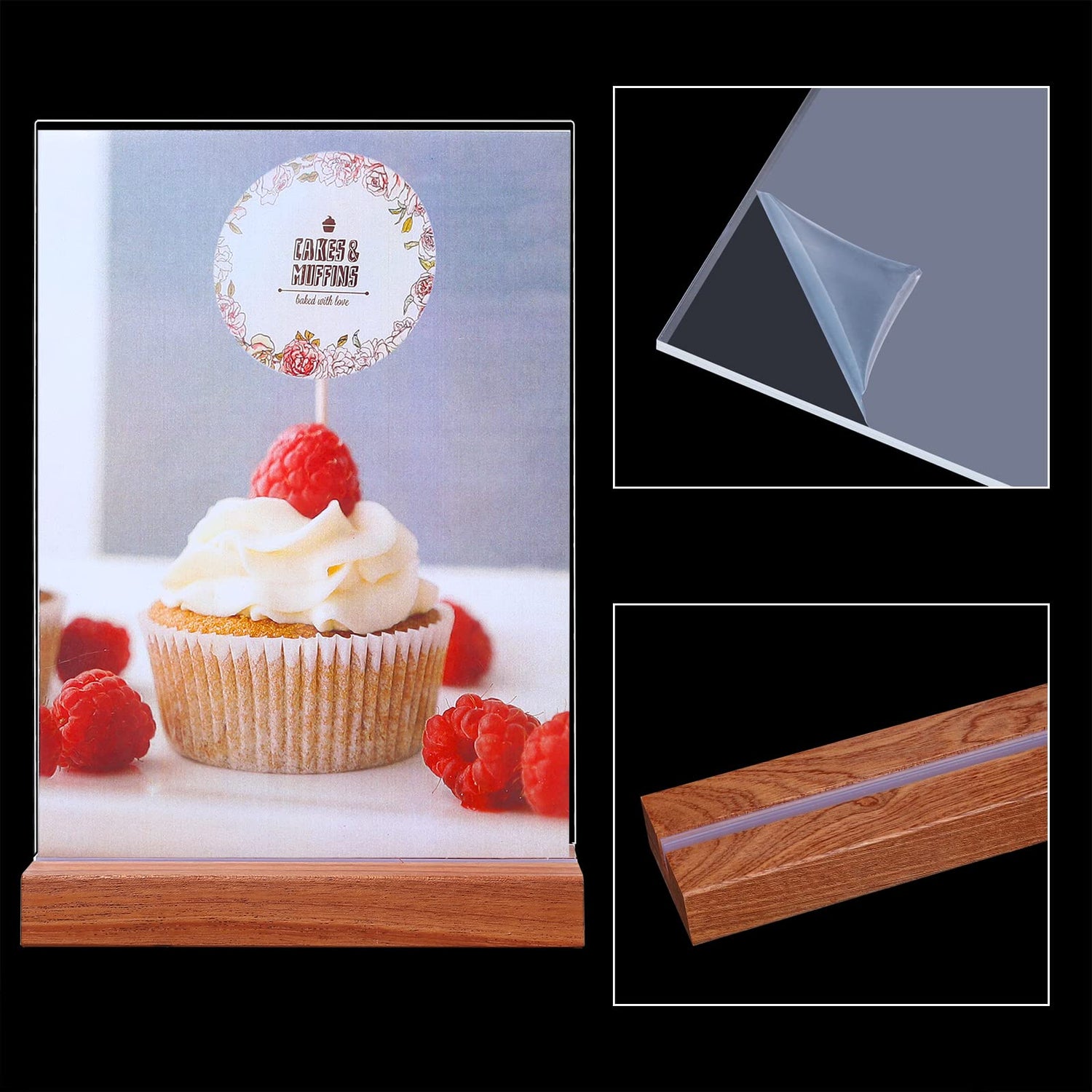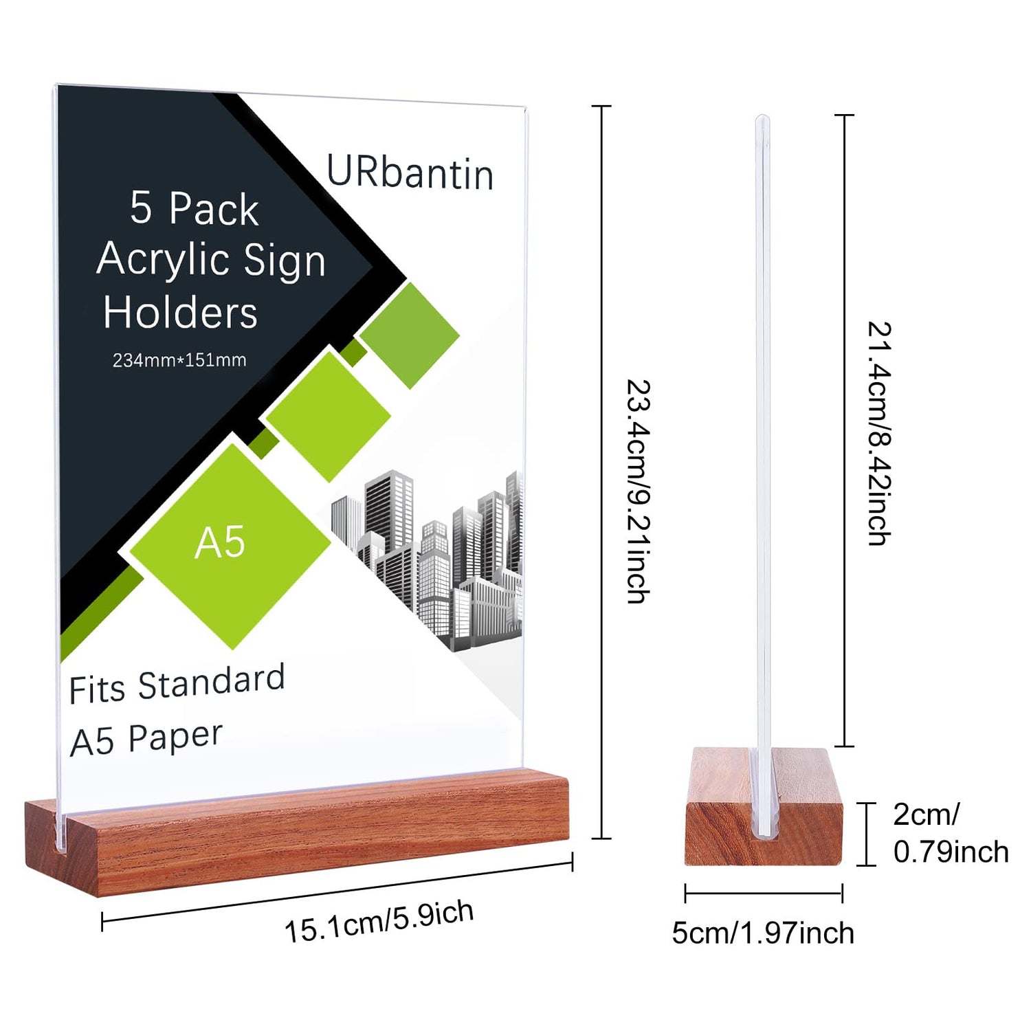 URbantin A5 Ständer Aufsteller Acryl Tischaufsteller,5 Stück T-Ständer Werbeaufsteller T-Aufsteller,Doppelseitig Schildhalter für Restaurant,Hotel,Dokumente,Büro, Geschäft (Holzsockel)