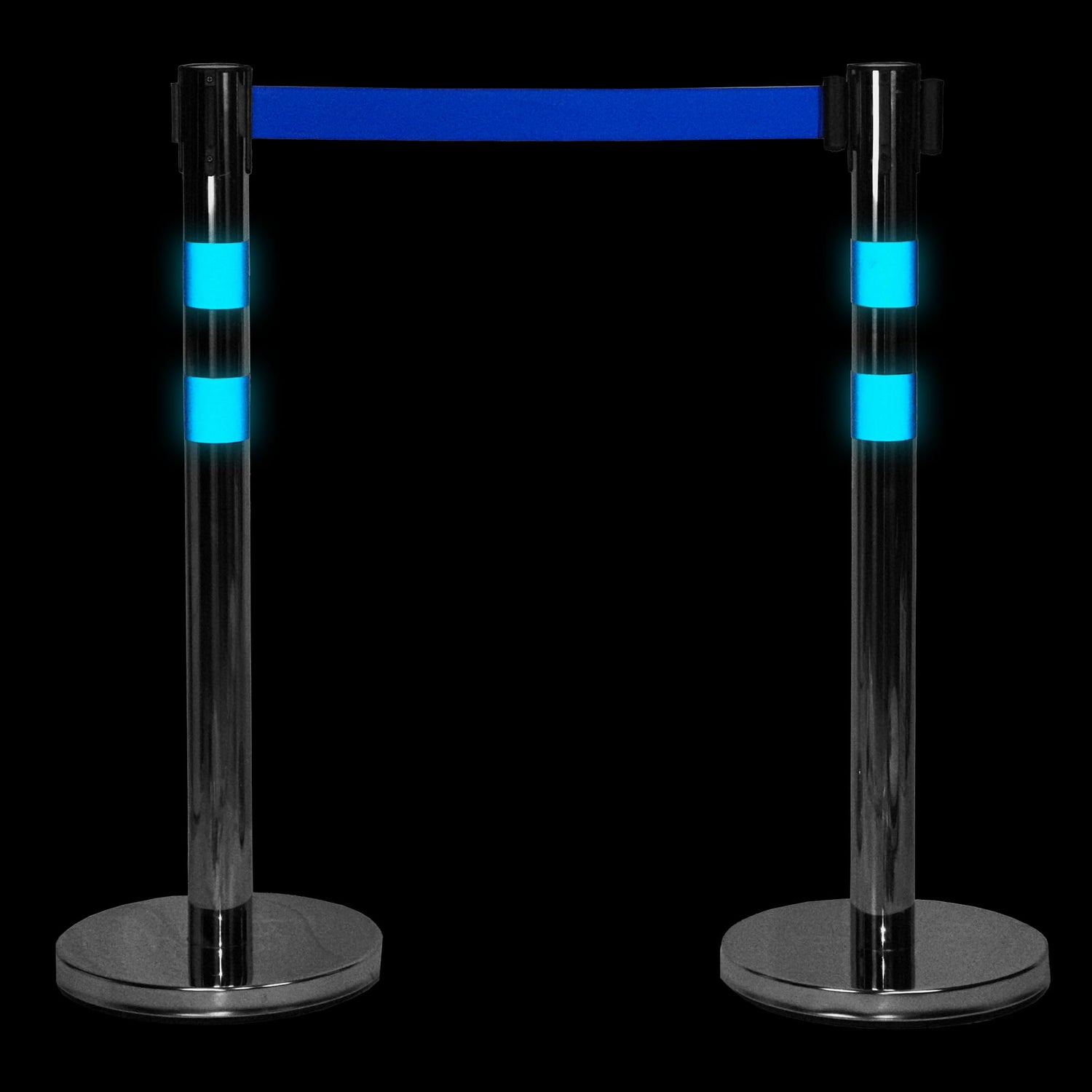 UvV BounceLine Personenleitsystem, Absperrpfosten, Edelstahl, 2 Pfosten 90 cm Hoch je 2 m Gewebeband (Stahl-6 kg (Basic), blau)