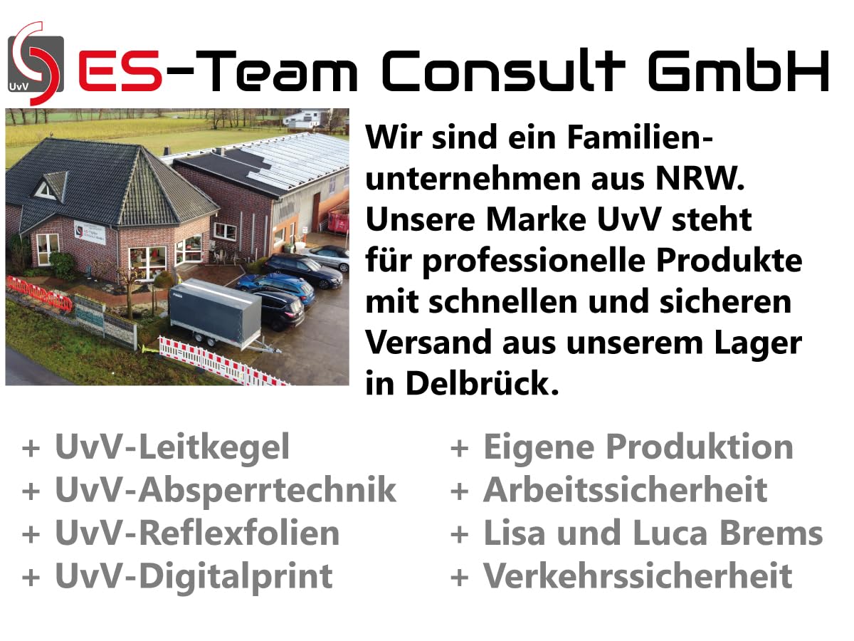• UvV EINE MARKE VON ES-Team steht für Professionelle Produkte für Absperrtechnik, Verkehrstechnik, Leitkegel, Sicherheitsprodukte